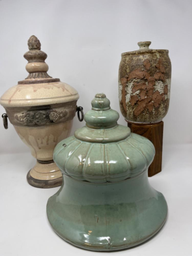 Lot # 107 - Three Decorative Pots Starting Bid: $ 5.00 Bids: This sale will end in: |