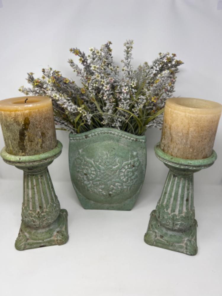 Lot # 120 - Green Flower And Candle Triad Starting Bid: $ 5.00 Bids: This sale will end in: |