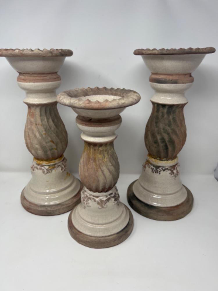 Lot # 122 - 3 Ceramic Pedestals/Candleholders Starting Bid: $ 5.00 Bids: This sale will end in: |
