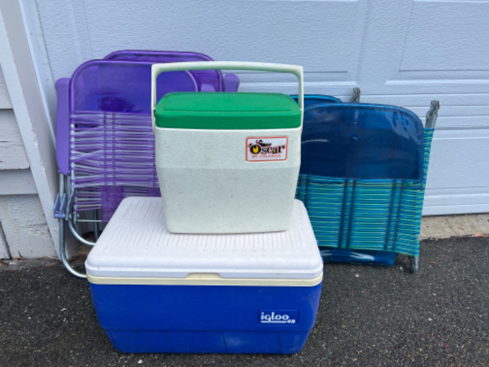 Lot # 129 - To The Beach We Go With Coolers And Loungers Starting Bid: $ 5.00 Bids: This sale will end in: |
