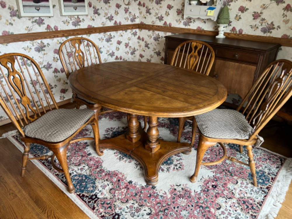 Lot # 10 - Drexel Heritage Double Pedestal Dining Table And Chairs Starting Bid: $ 5.00 Bids: This sale will end in: |