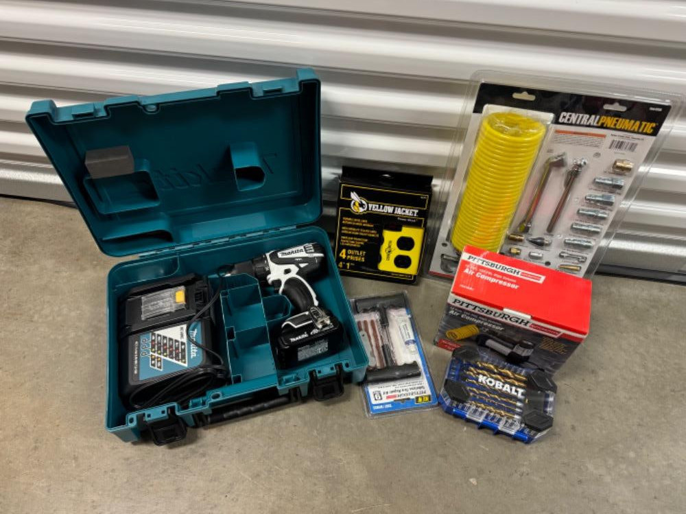 Lot # 160 - Assorted Power Tools & Accessories: Makita, Kobalt, & Pittsburgh+ Starting Bid: $ 5.00 Bids: This sale will end in: |