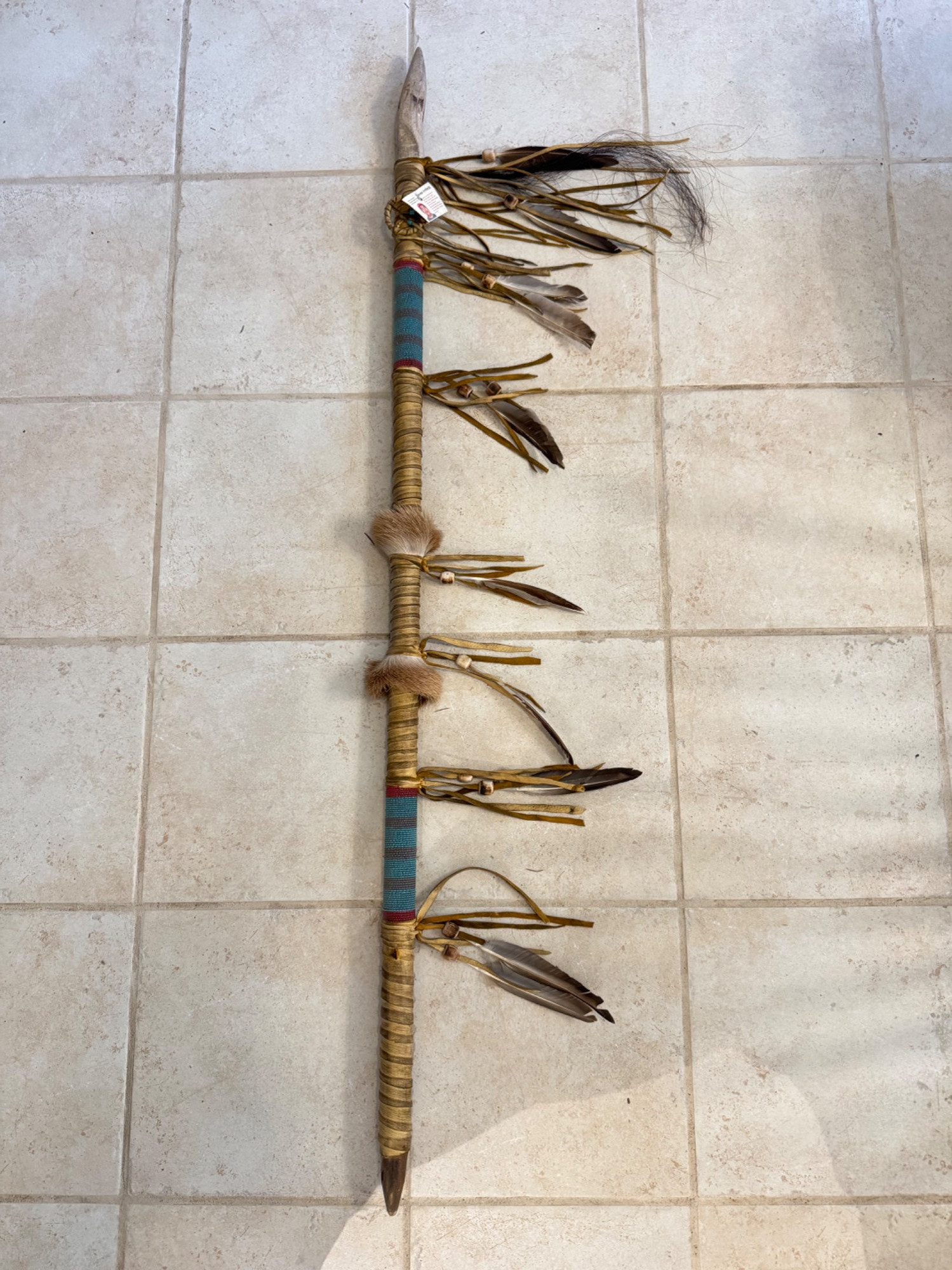 Lot # 191 - 56" Navajo Made/Navajo Inspired Leather Wrapped Spirit Stick Starting Bid: $ 5.00 Bids: This sale will end in: |