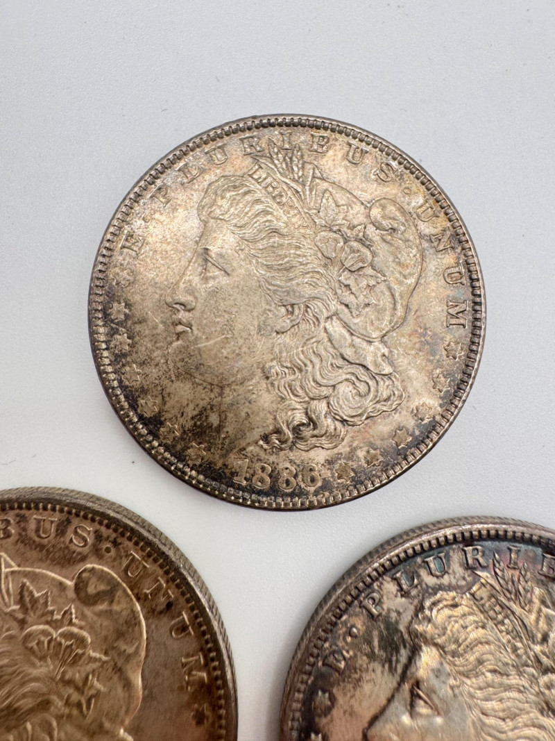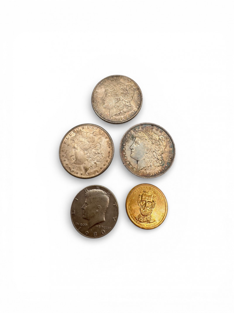 3 Morgan Silver Dollars + 1980 Kennedy Half & Lincoln $1.