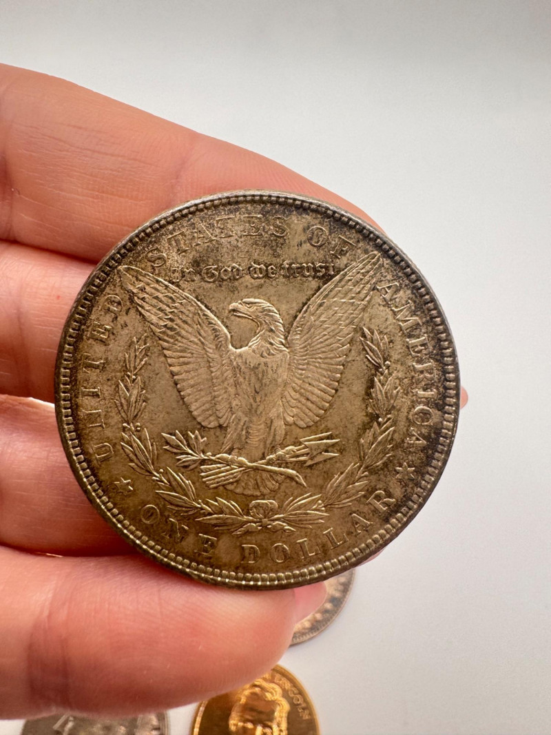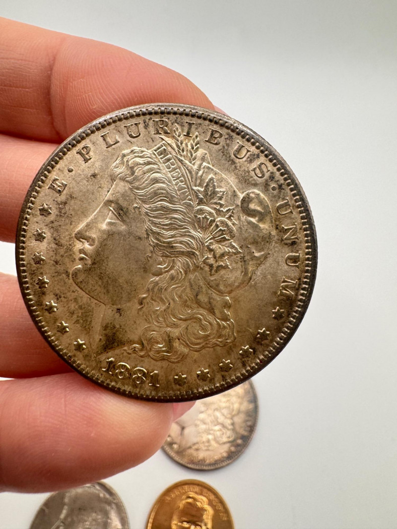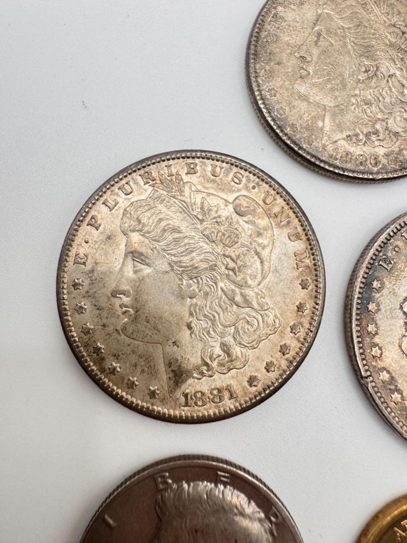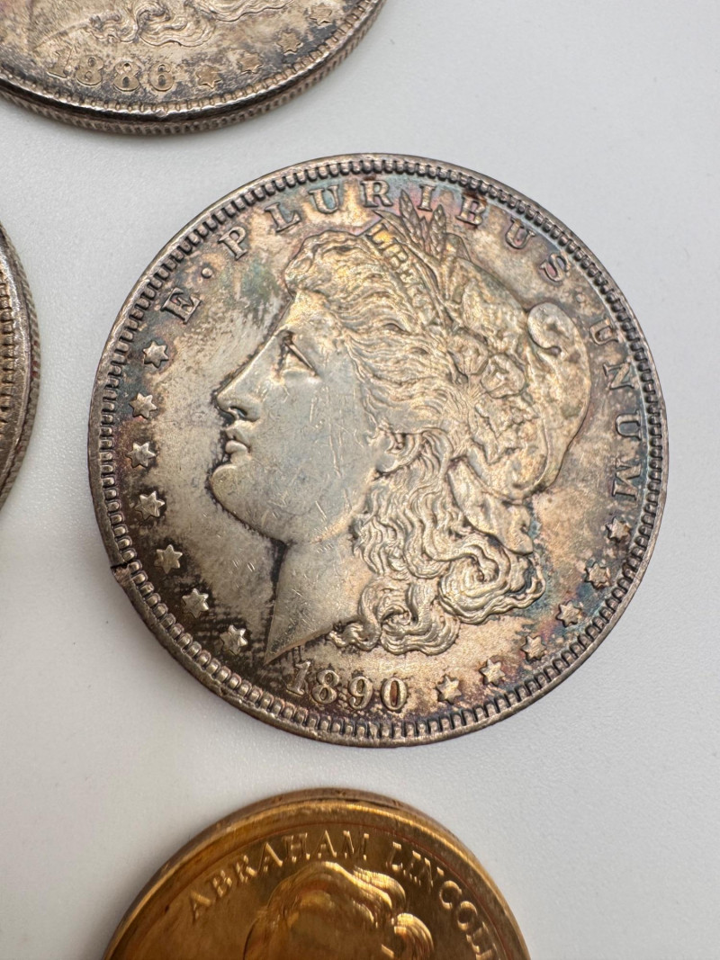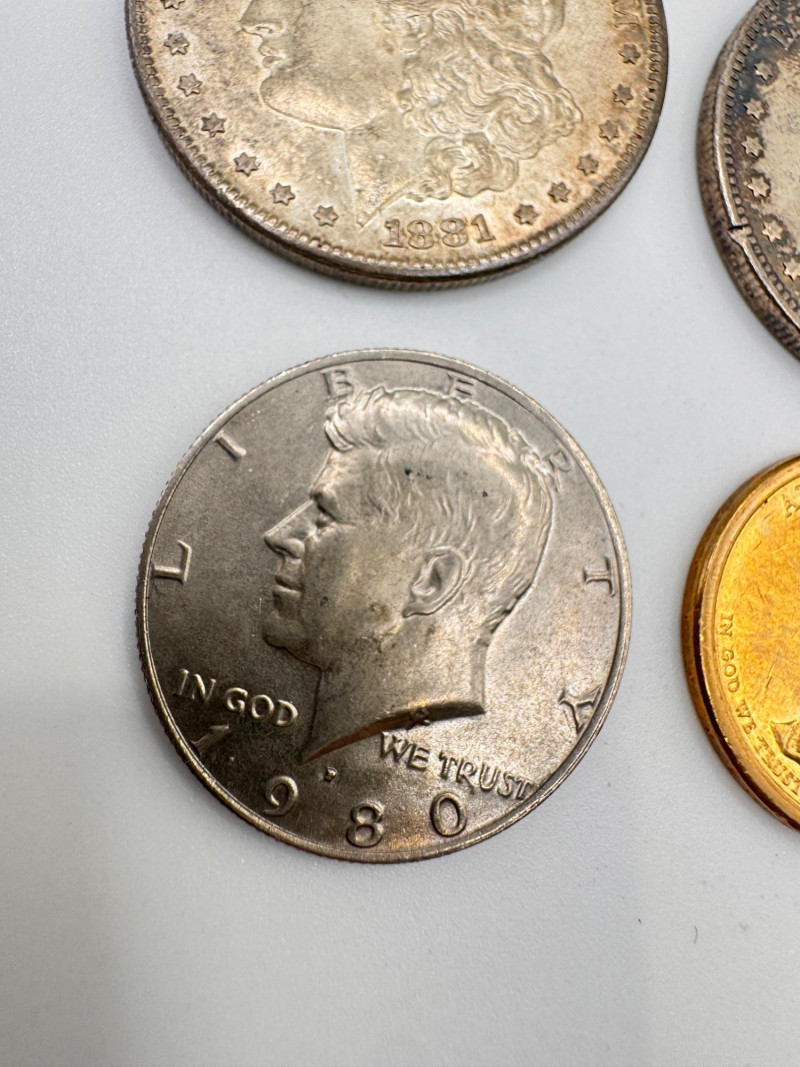 Lot # 123 - 3 Morgan Silver Dollars + 1980 Kennedy Half & Lincoln $1
