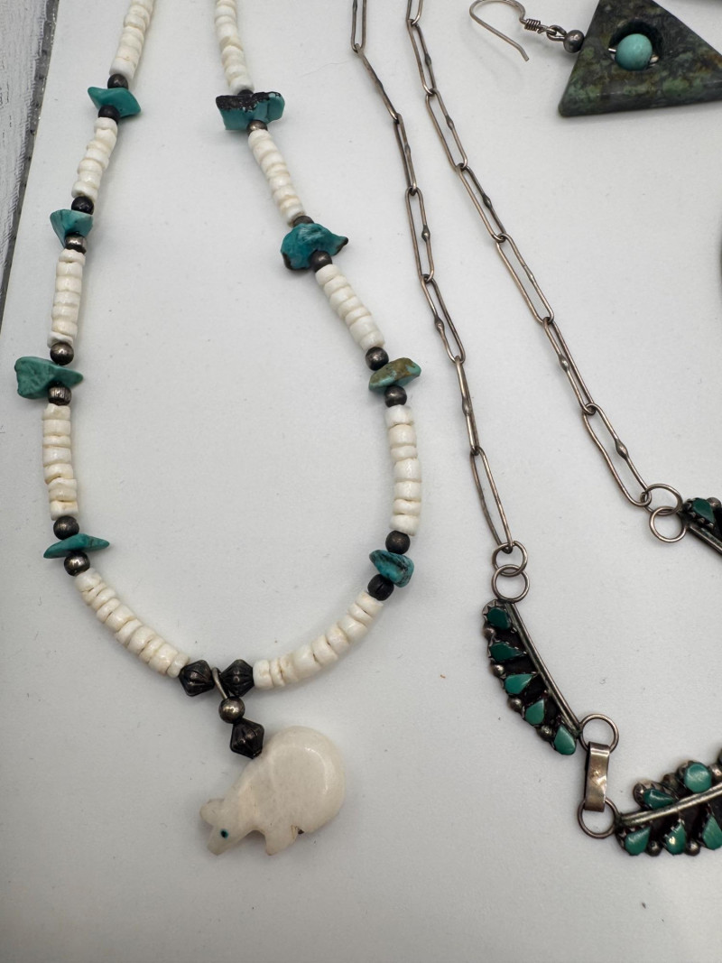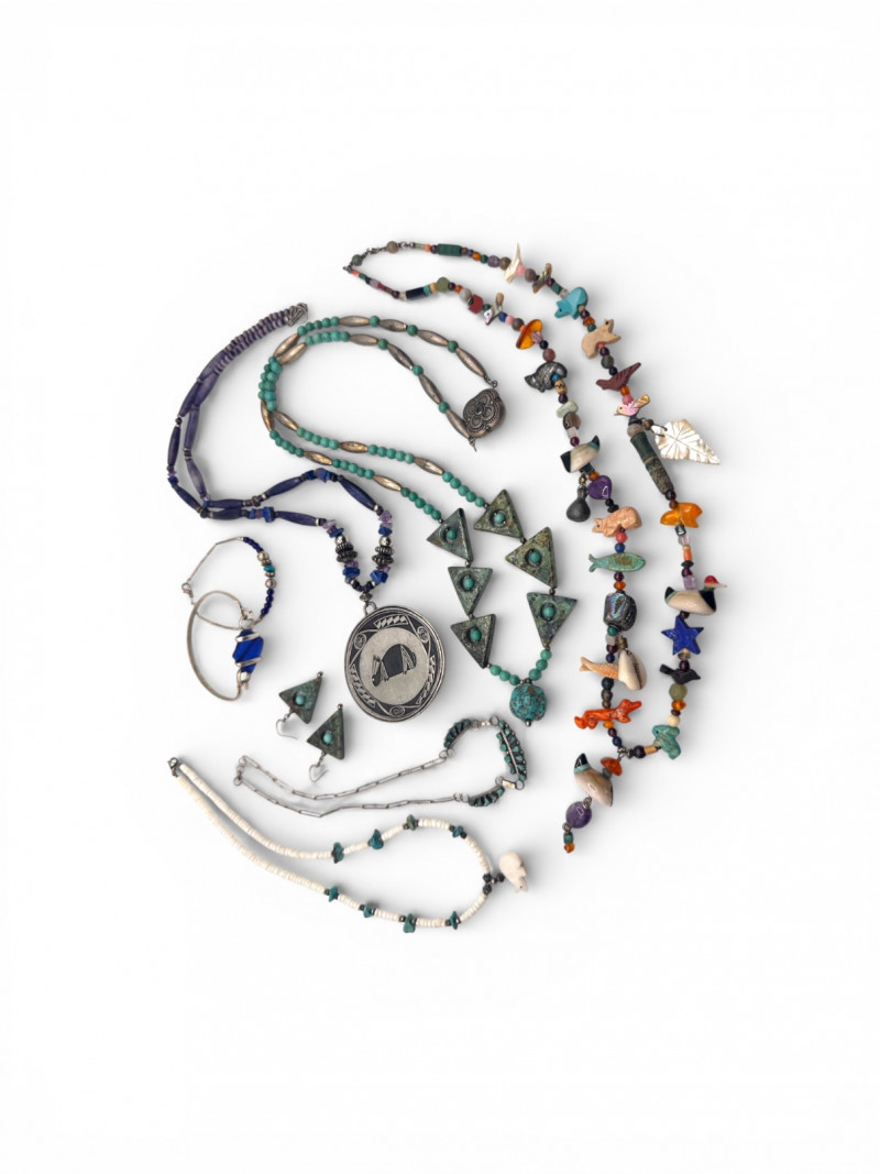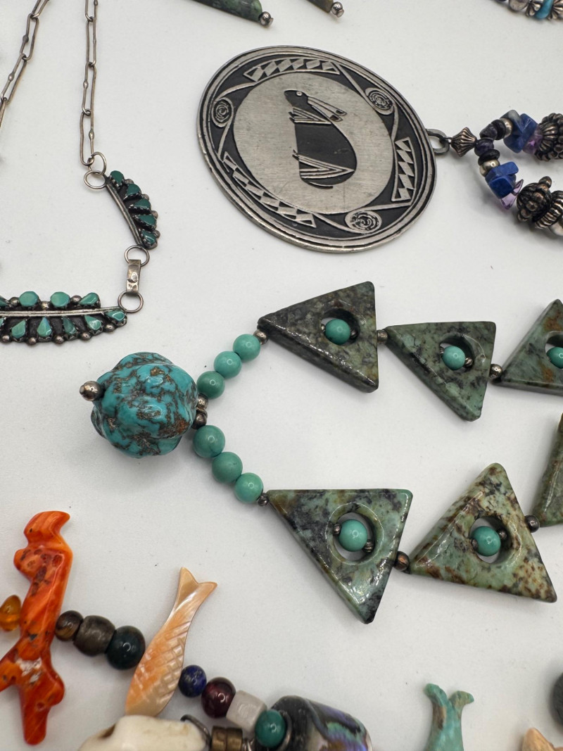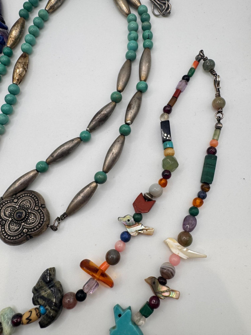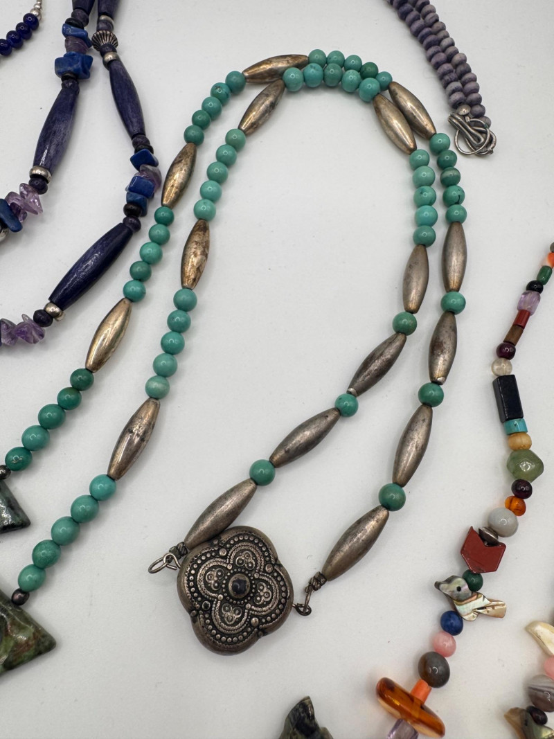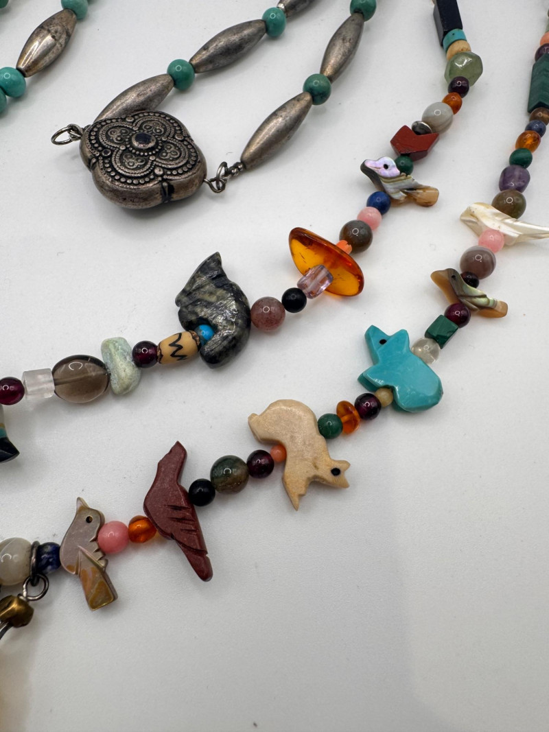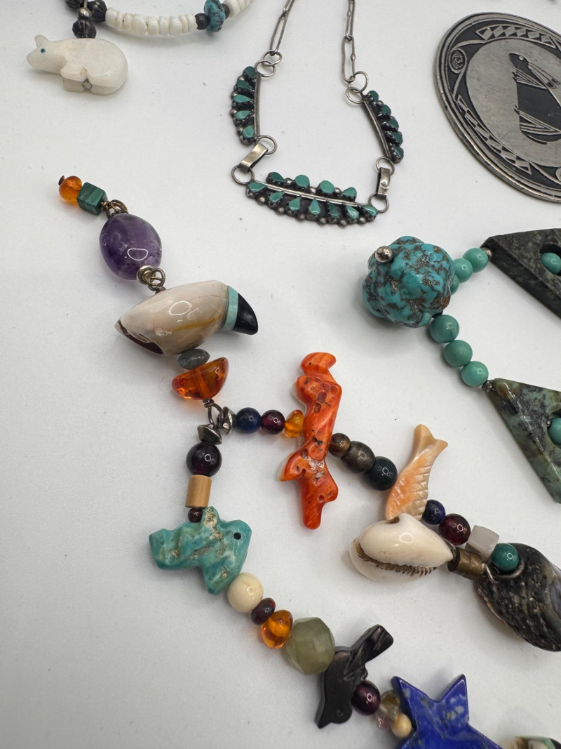 Lot # 128 - Native American Style Jewelry: Zuni Fetish Necklaces, Stone Beads +