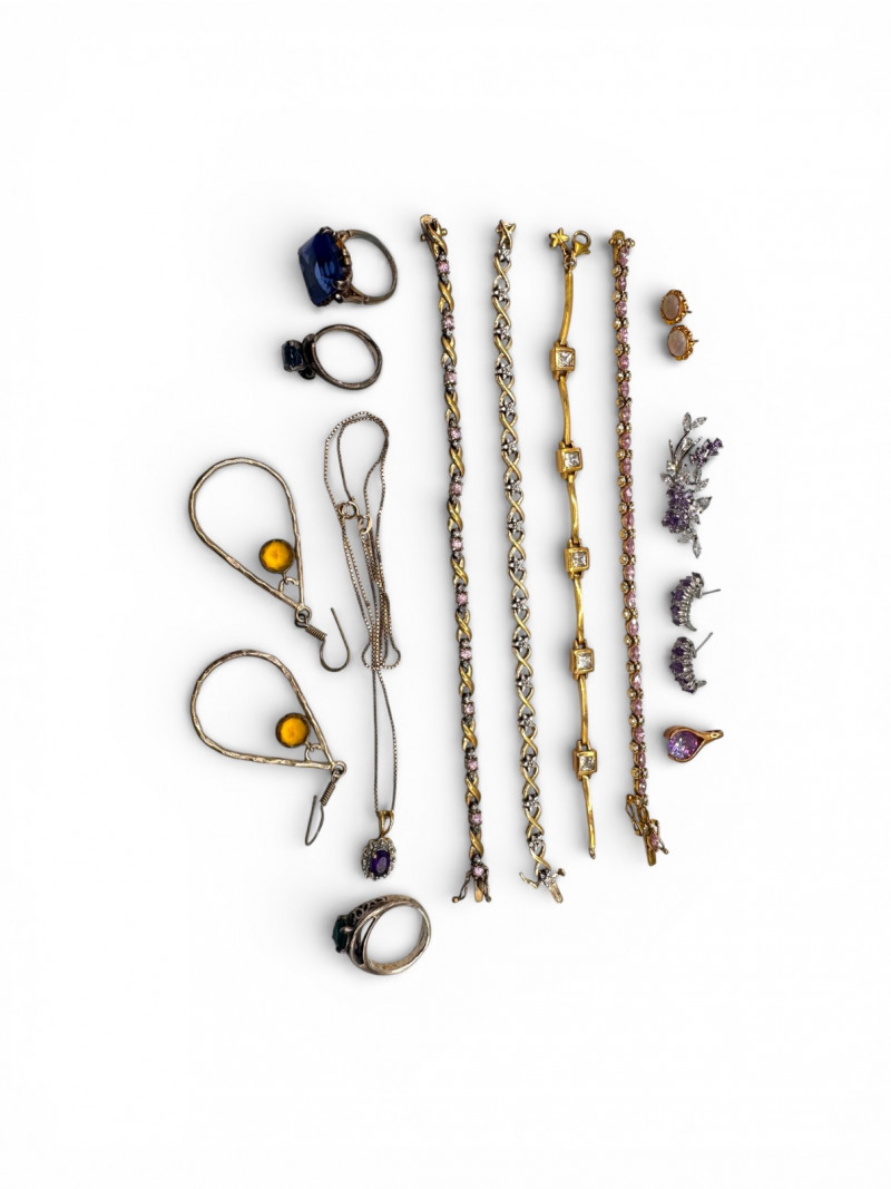 Sterling Silver Jewelry w/ Stone Bracelets, Rings, Pendants – 86.85g.