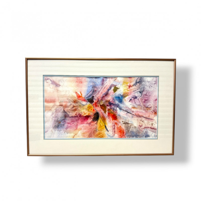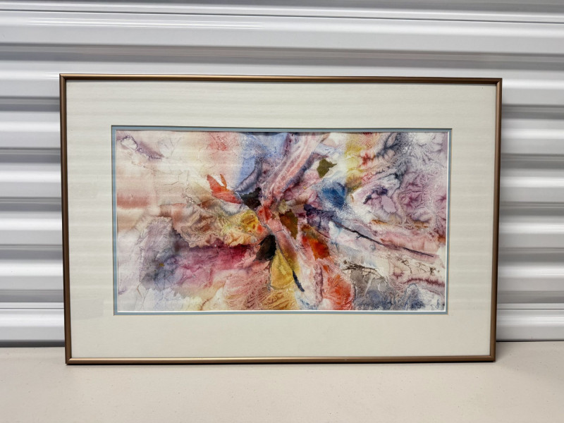 Lot # 156 - Sandra B Walker "Wonders" - Abstract Burst Watercolor Collage, Framed