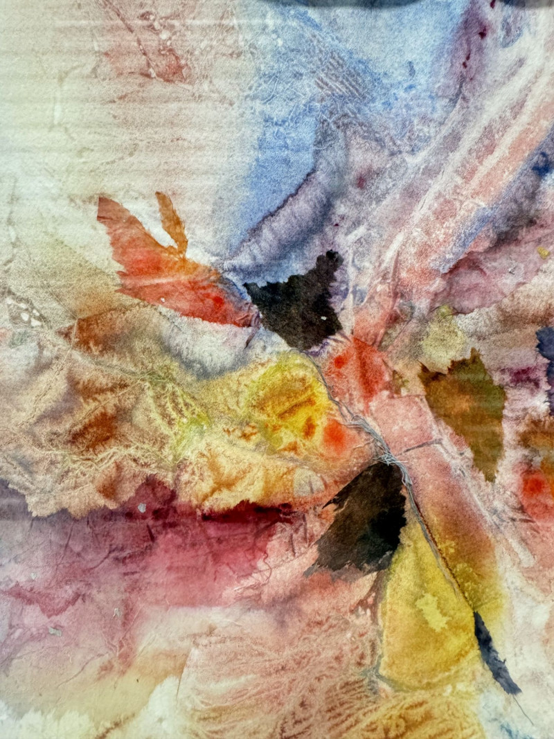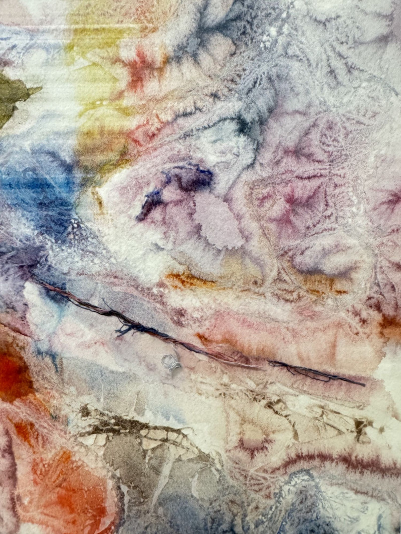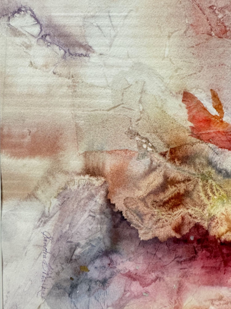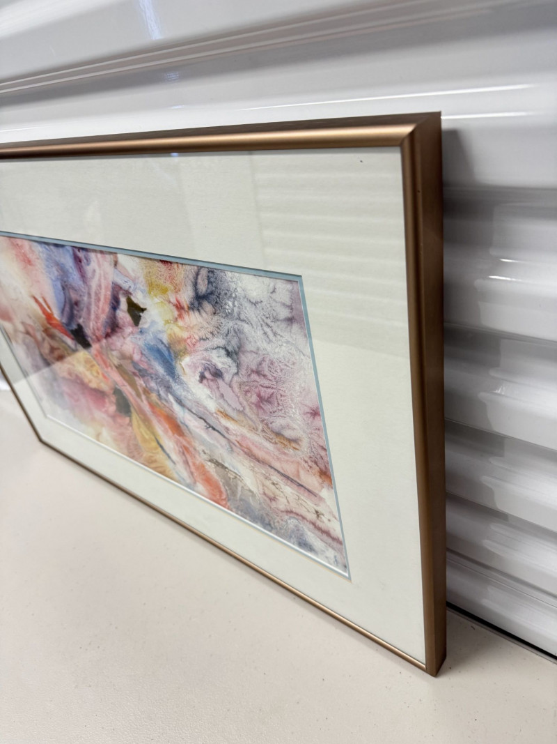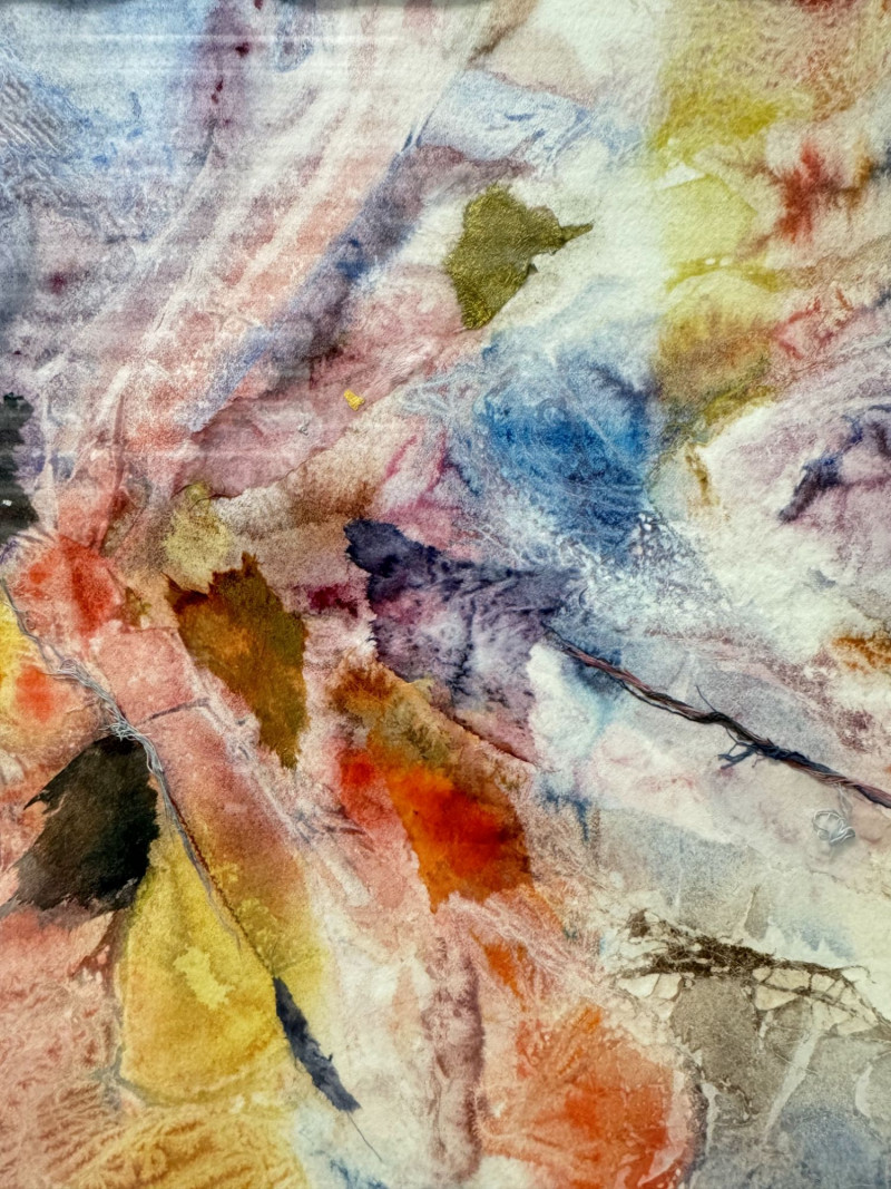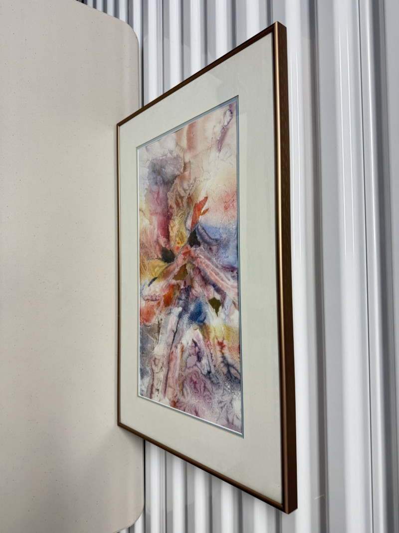 Sandra B Walker "Wonders" - Abstract Burst Watercolor Collage, Framed.