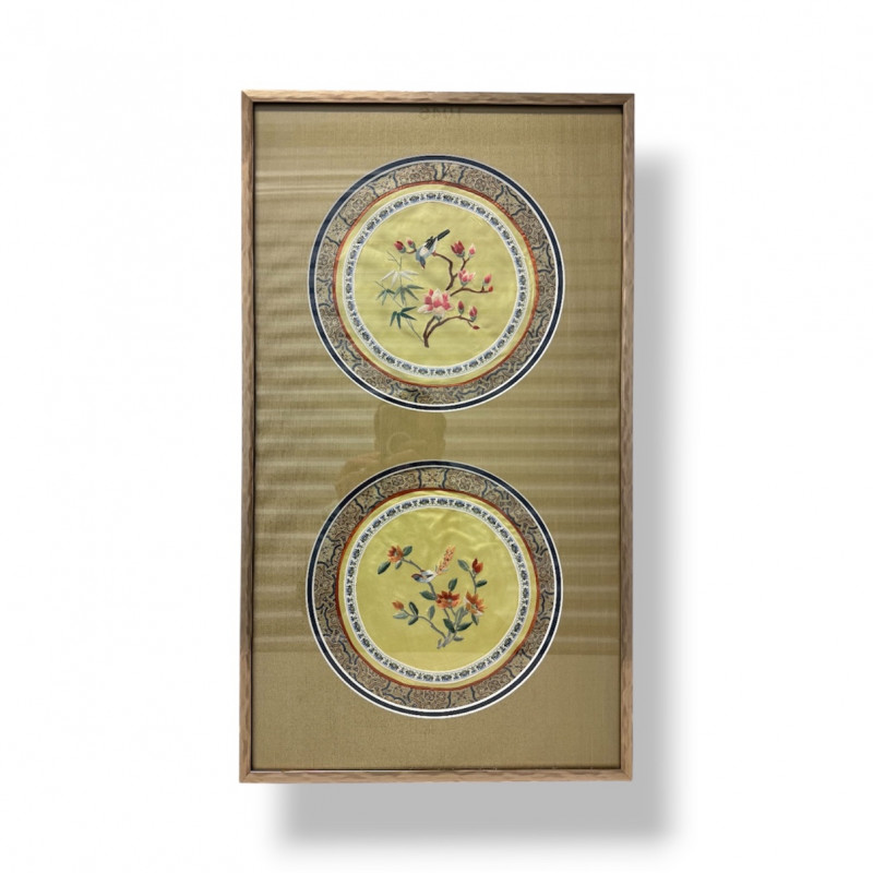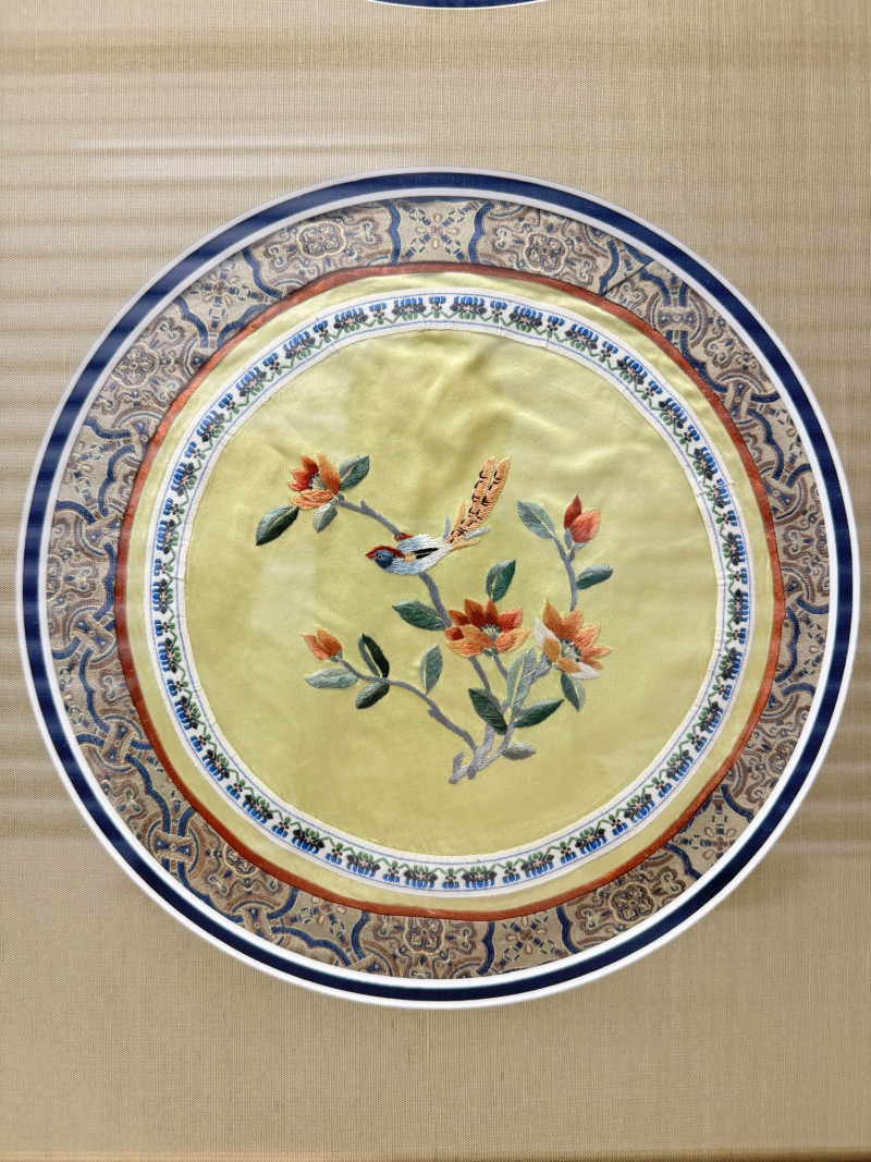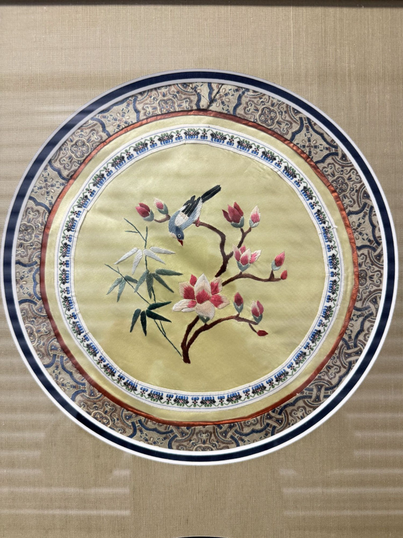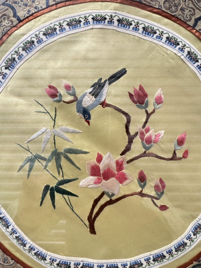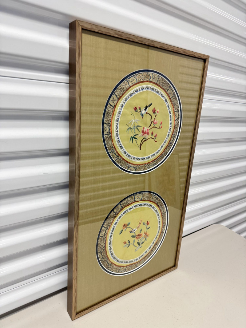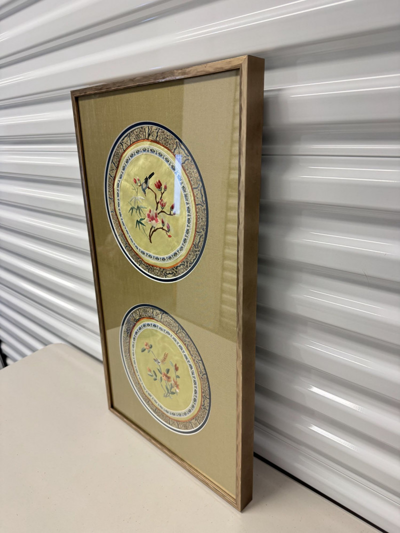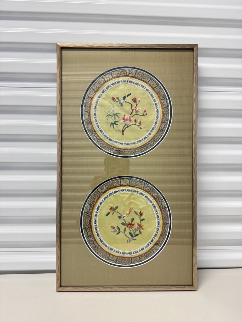 Lot # 162 - Framed Asian Silk Embroidery w/ Birds & Floral Design