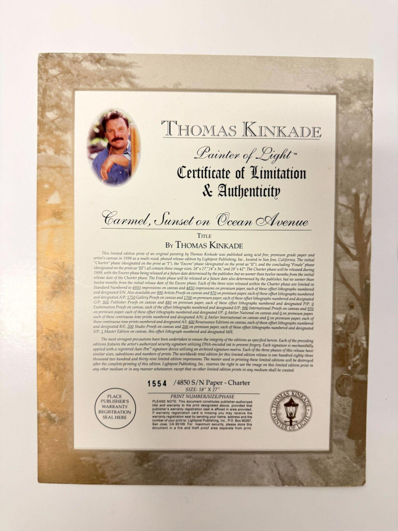 Large Thomas Kinkade Original Limited Edition Print w/ COA.