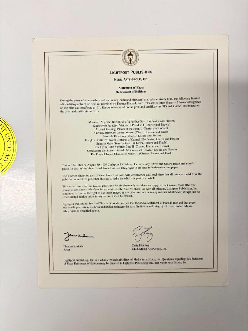 Lot # 181 - Large Thomas Kinkade Original Limited Edition Print w/ COA