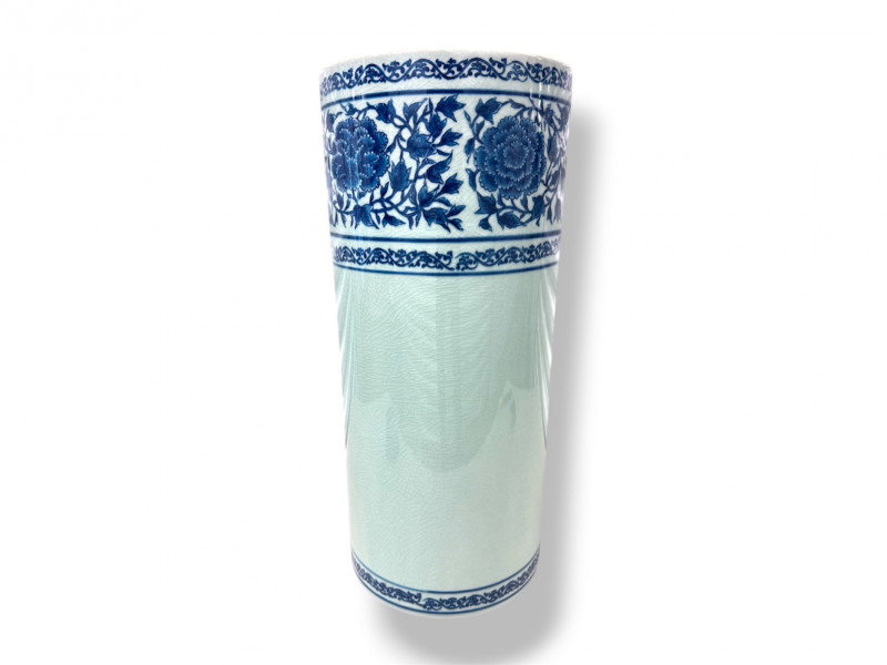 Large Ceramic Floor Vase - Blue/White Floral Crackle Glaze.