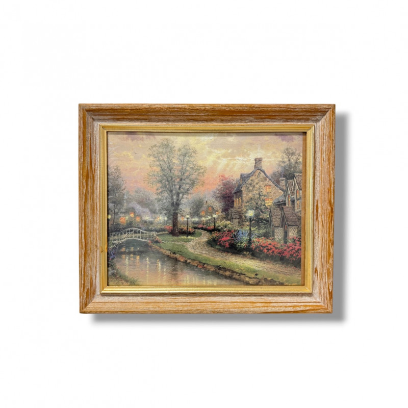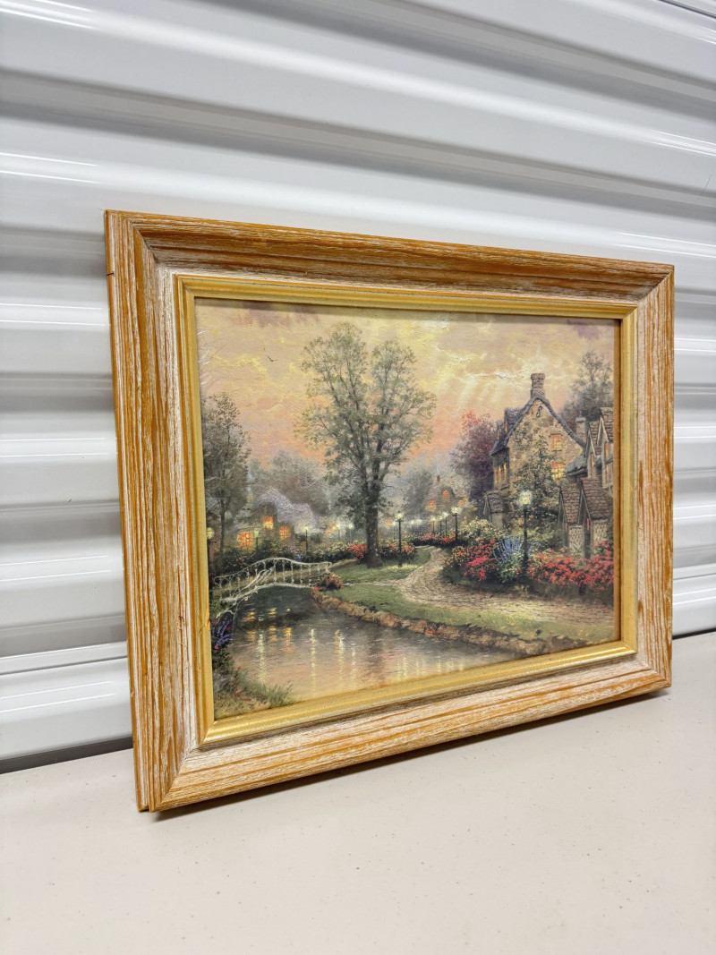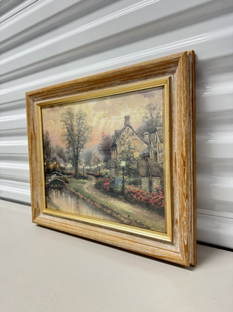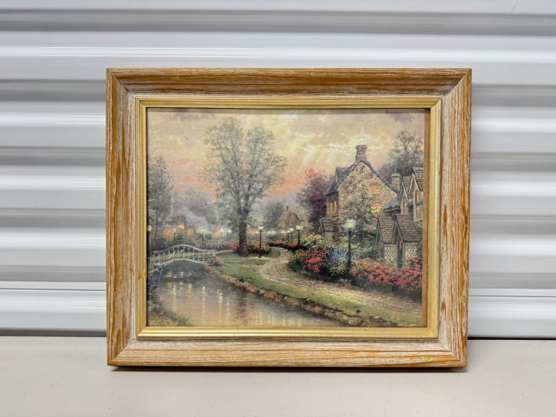 Thomas Kinkade "Lamplight Lane" Framed Artwork Print.