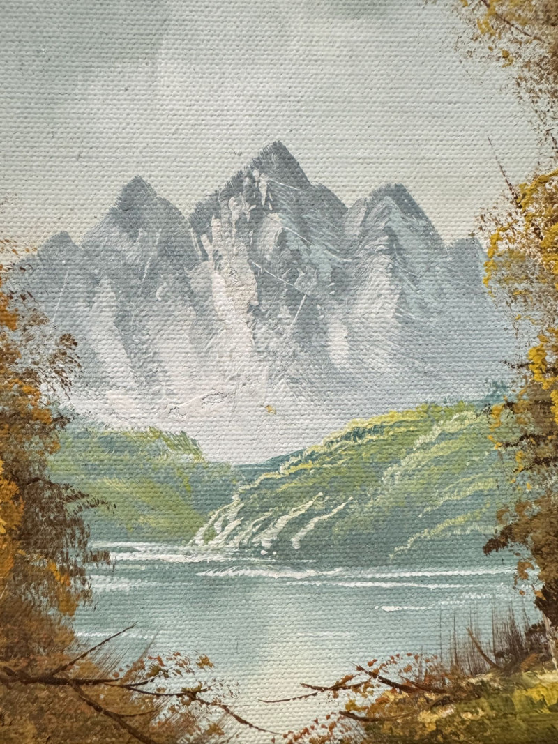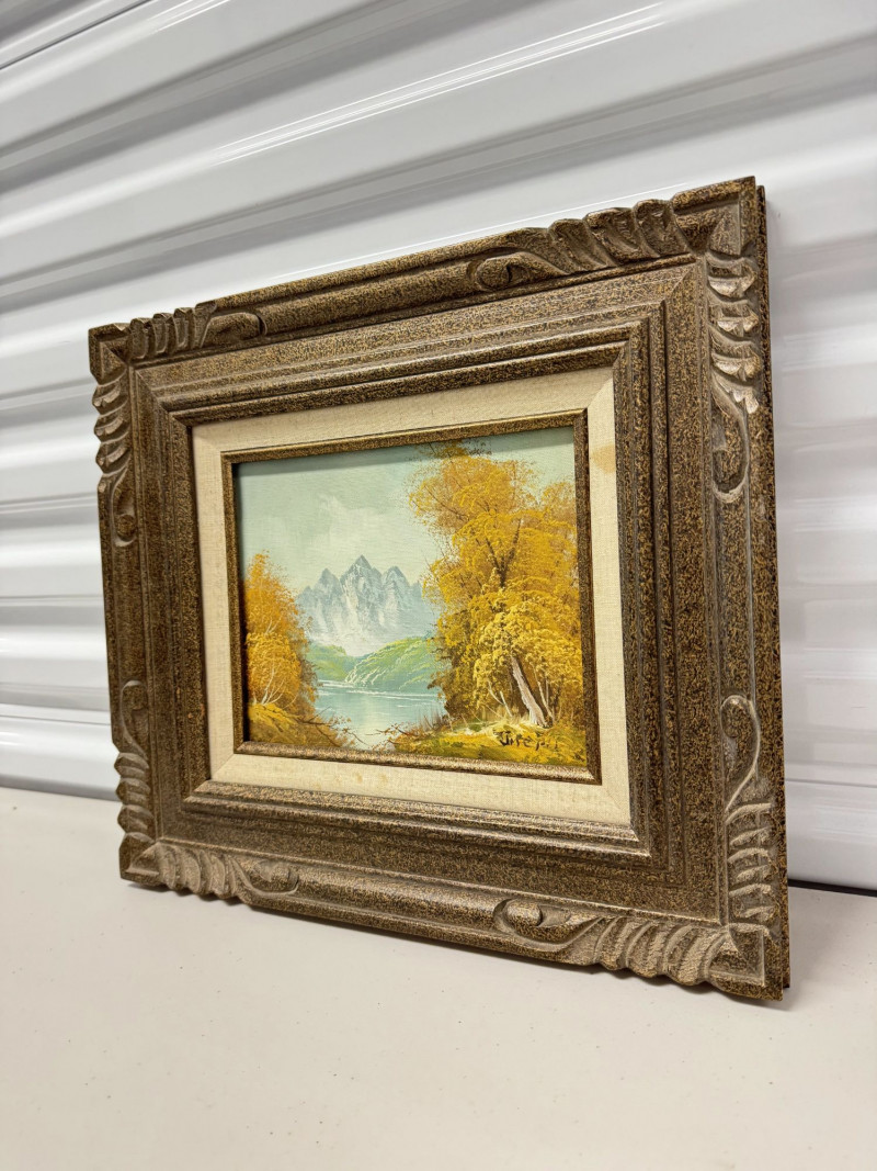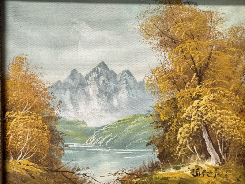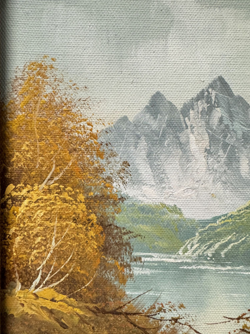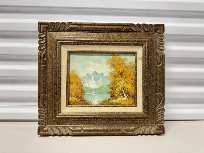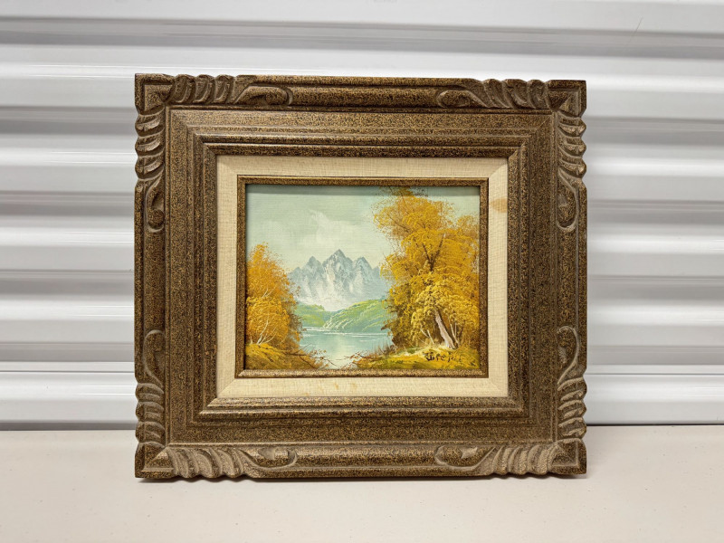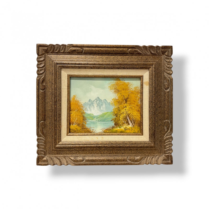 Framed Landscape Artwork - Mountain Lake, Autumn Scene.