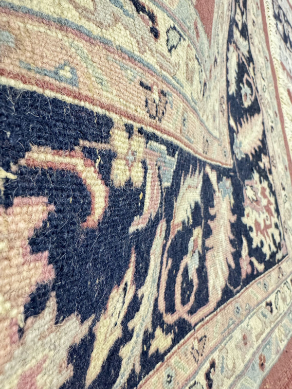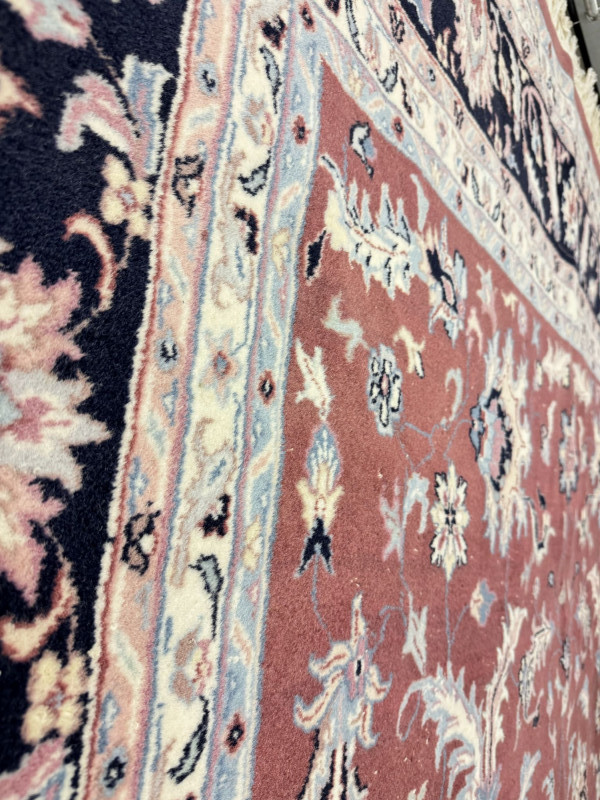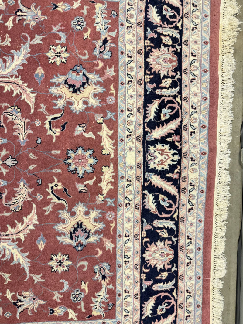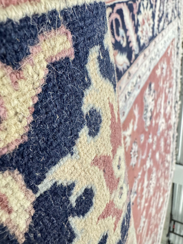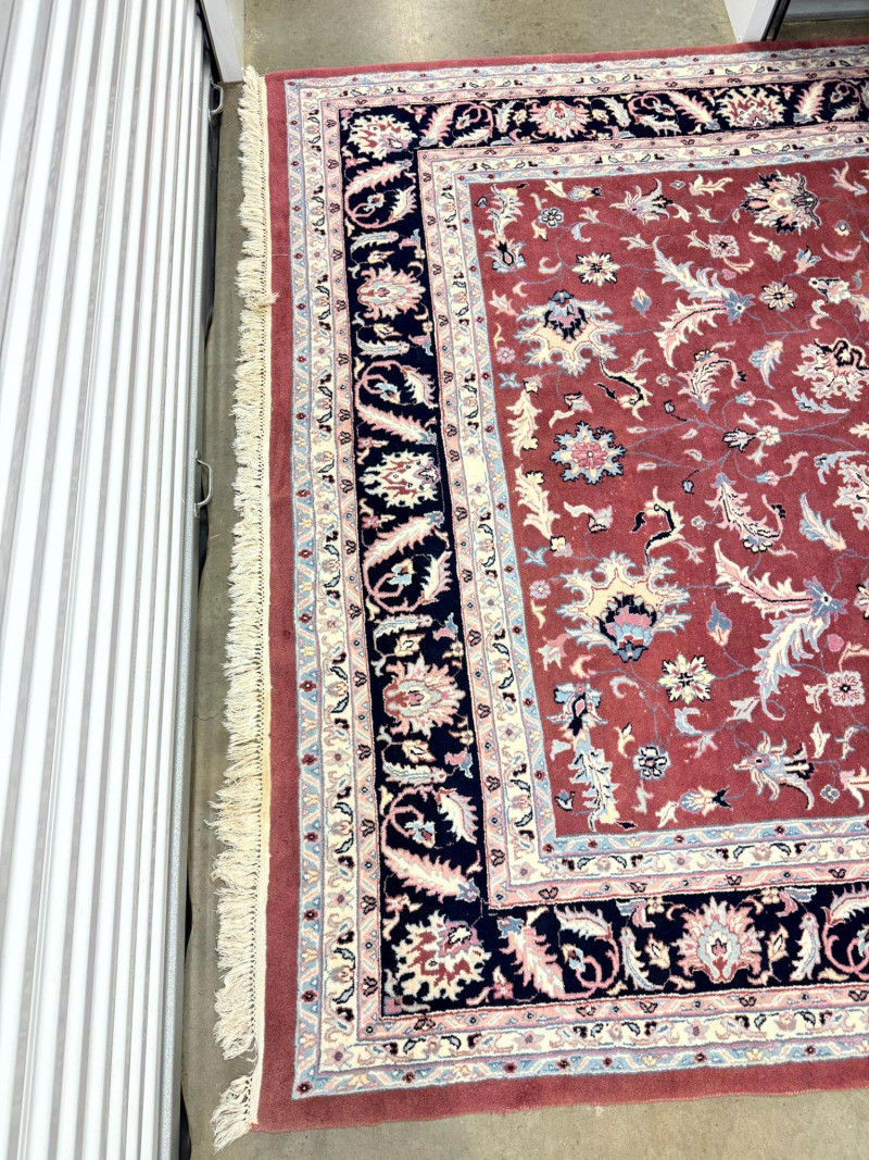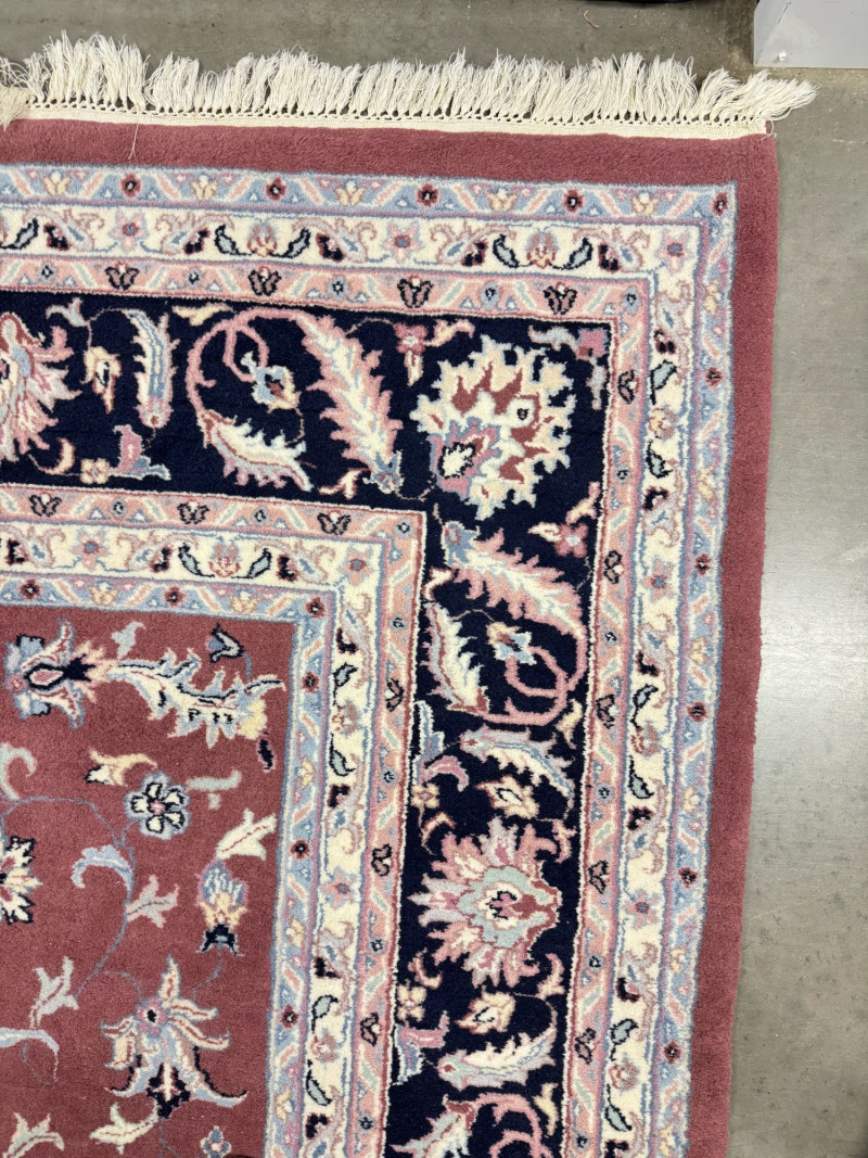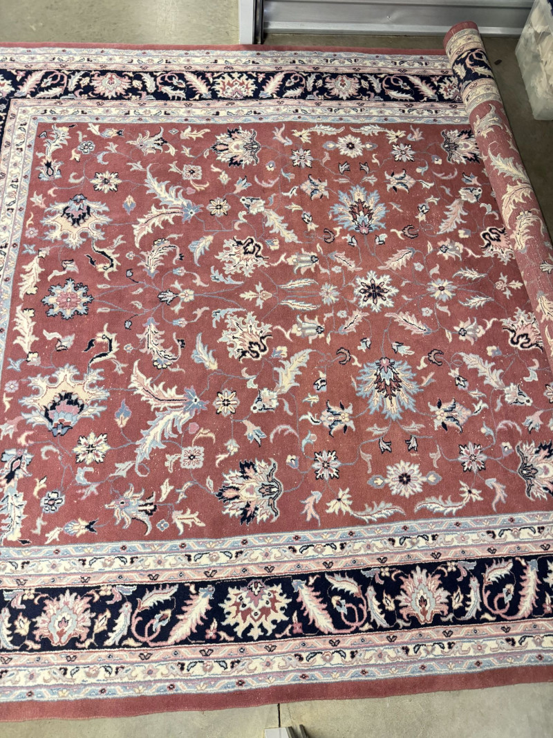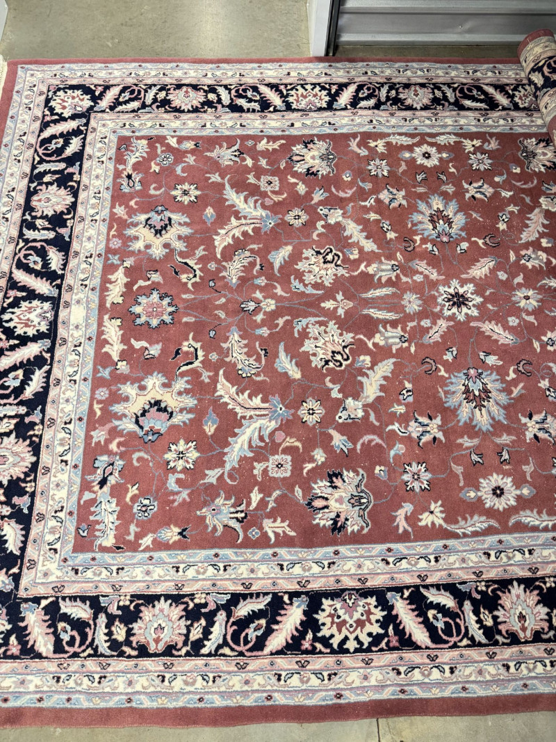 Large Wool Area Rug - Dusty Rose Floral w/ Navy Border 150" x 105".