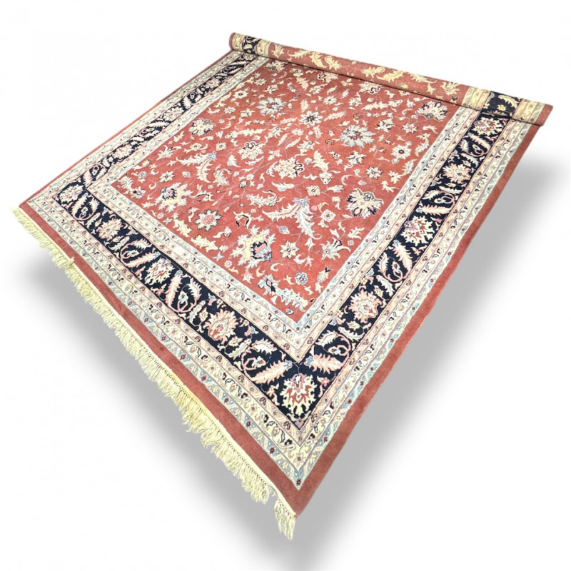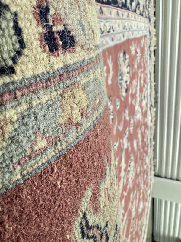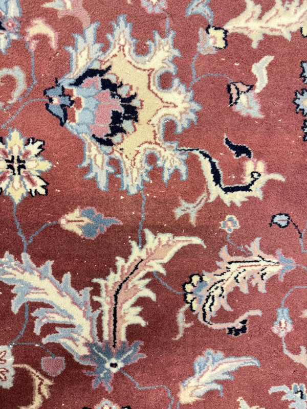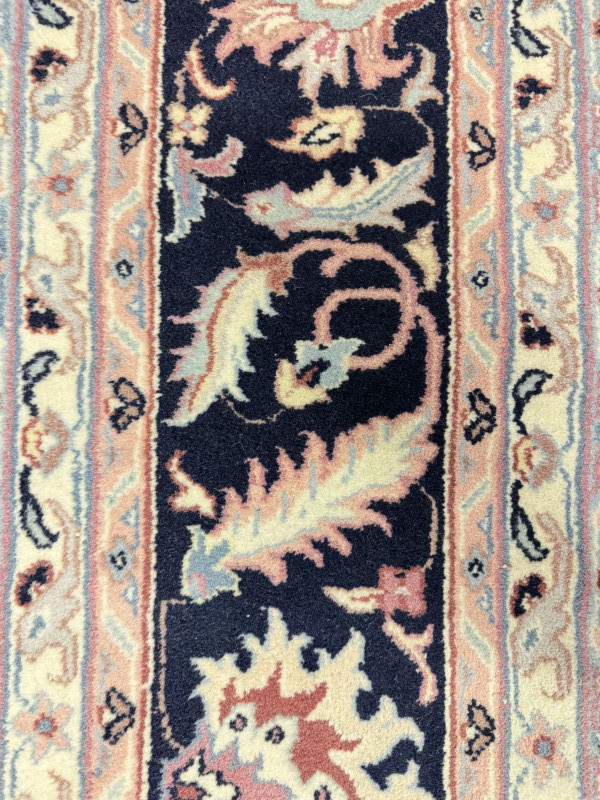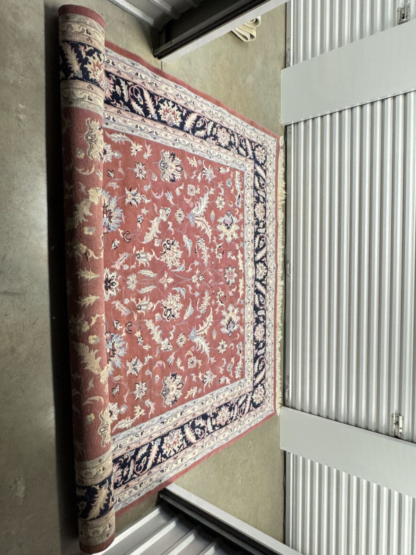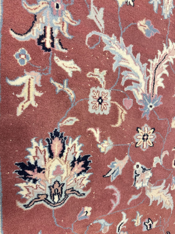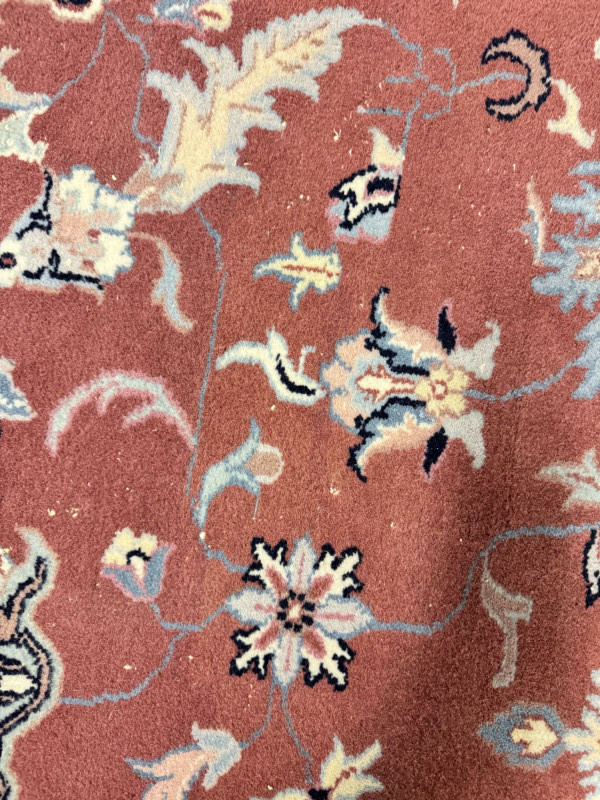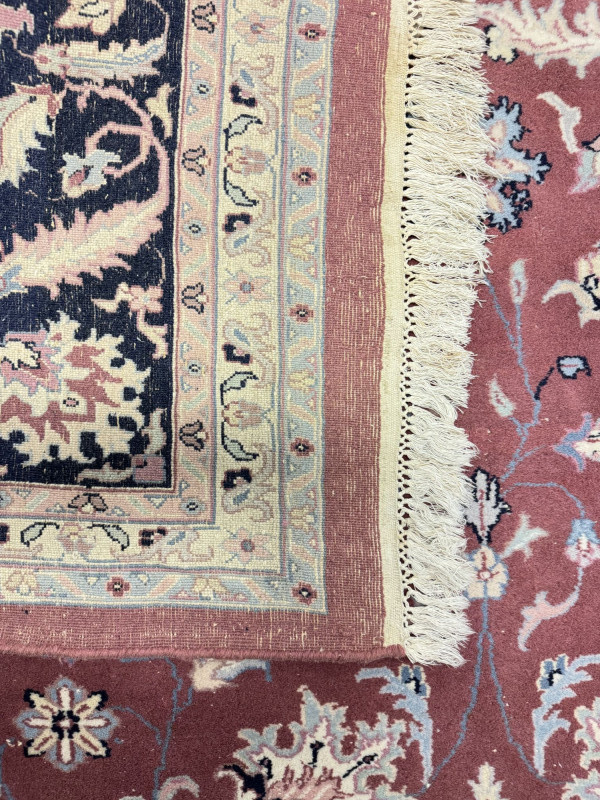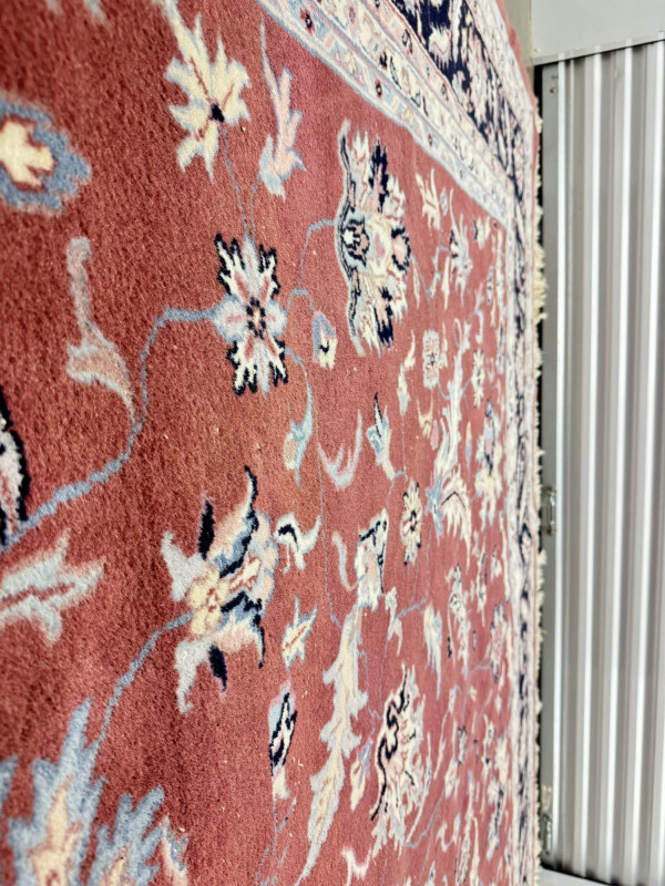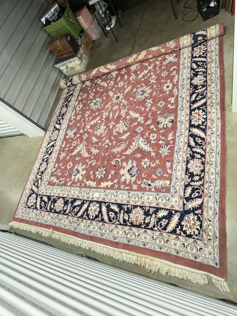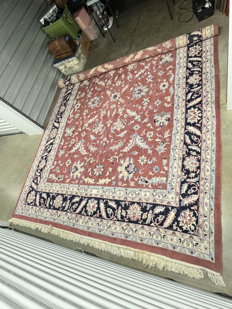 Large Wool Area Rug - Dusty Rose Floral w/ Navy Border 150" x 105".
