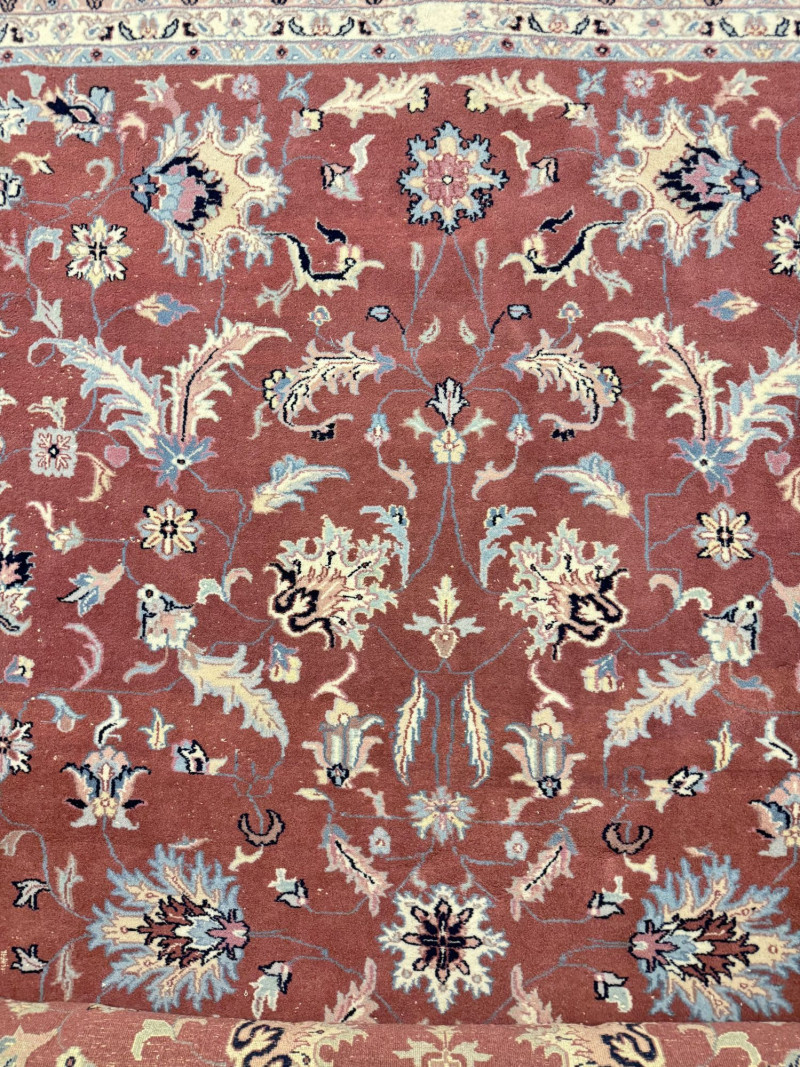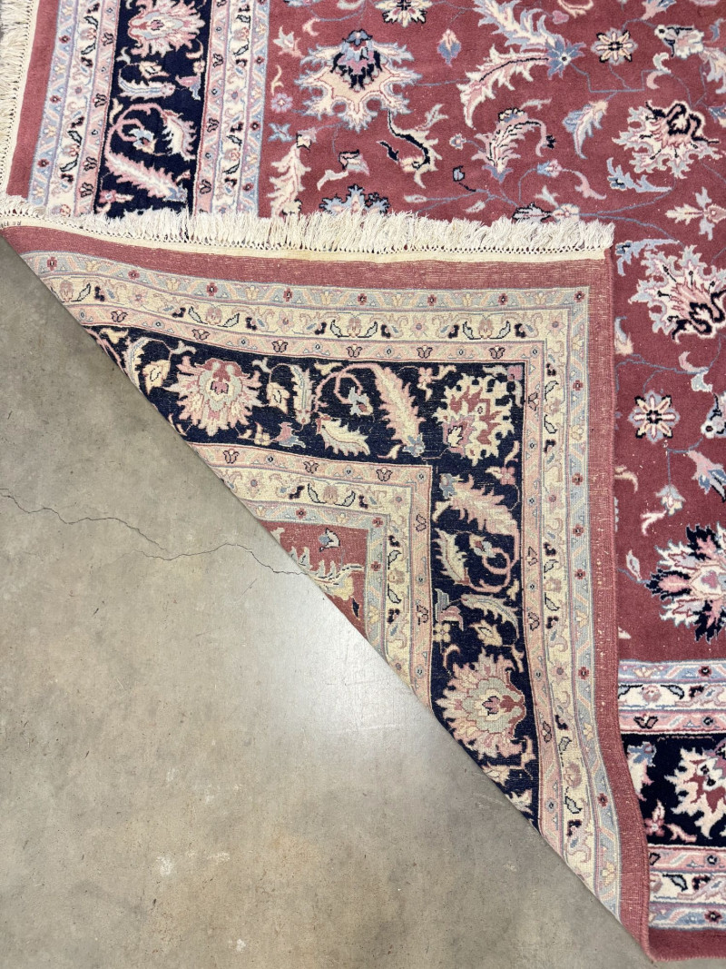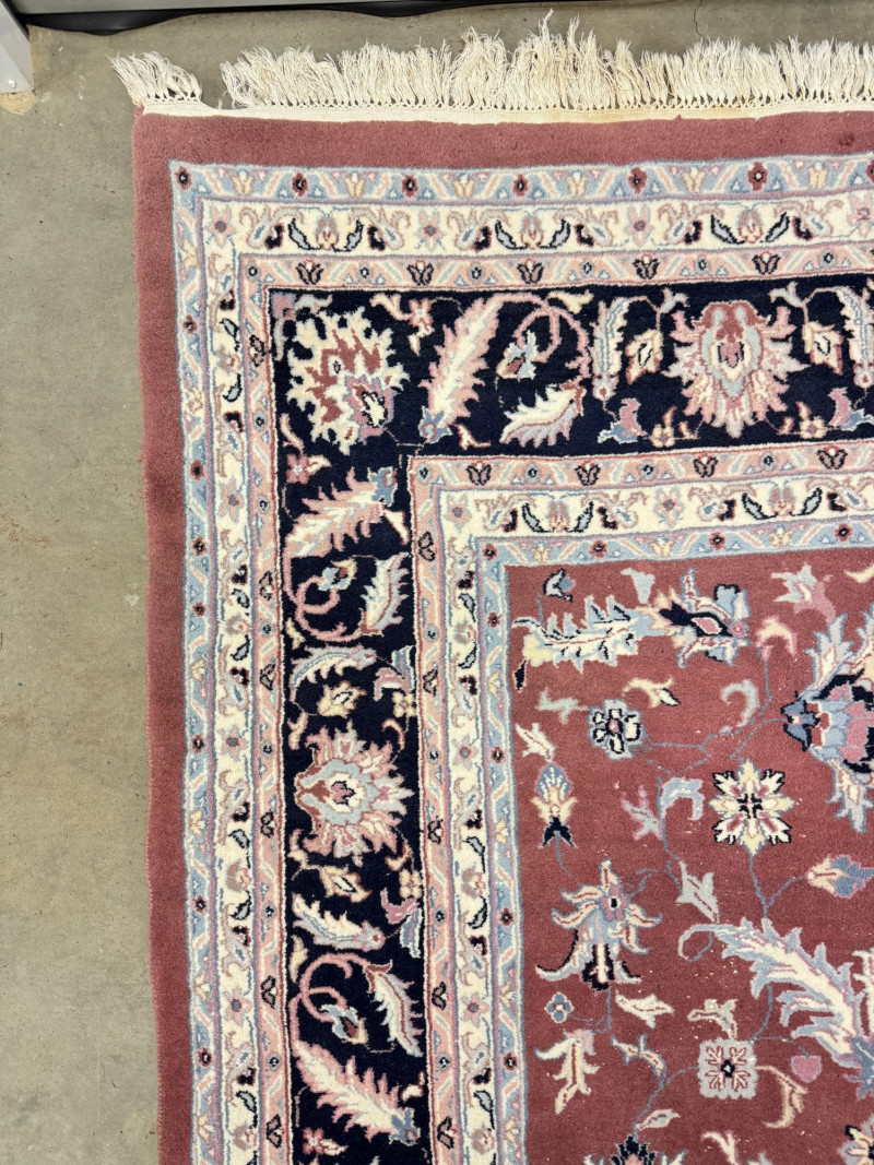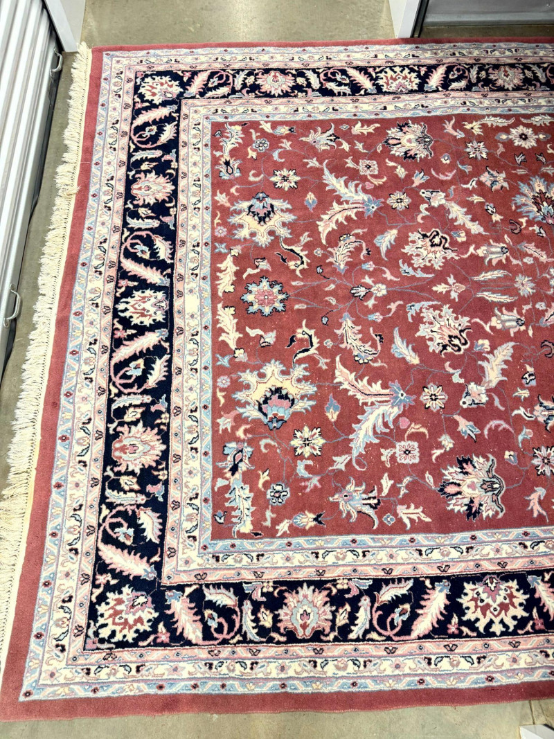 Lot # 194 - Large Wool Area Rug - Dusty Rose Floral w/ Navy Border 150" x 105"