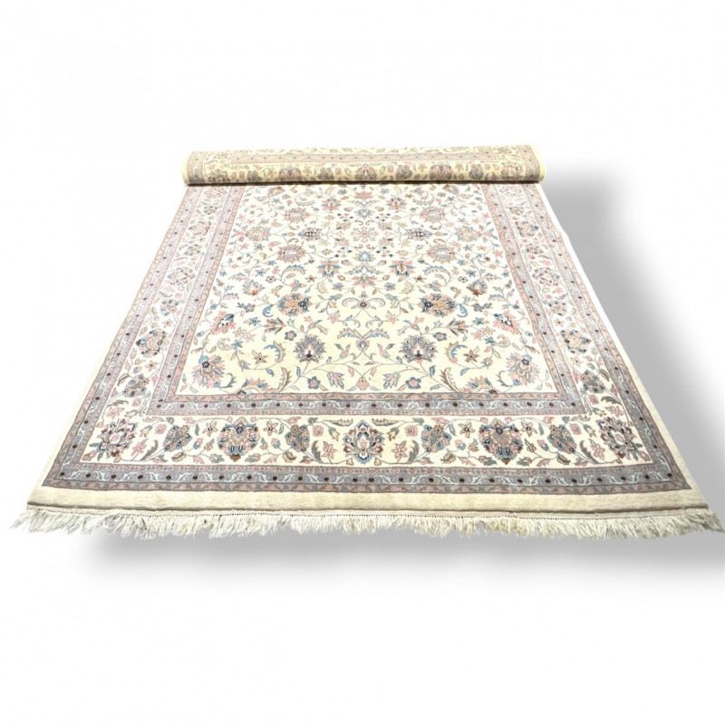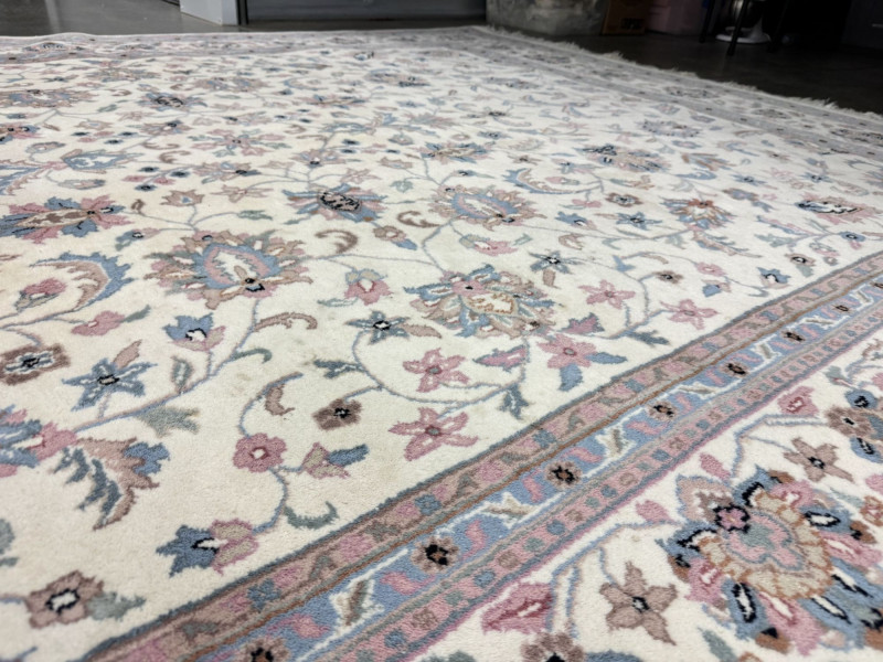 Lot # 195 - Large Cream Wool Floral Area Rug w/ Border Design 127" x 94"