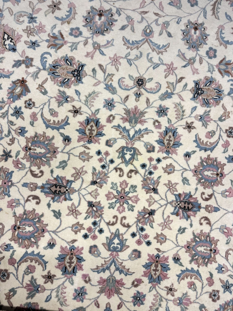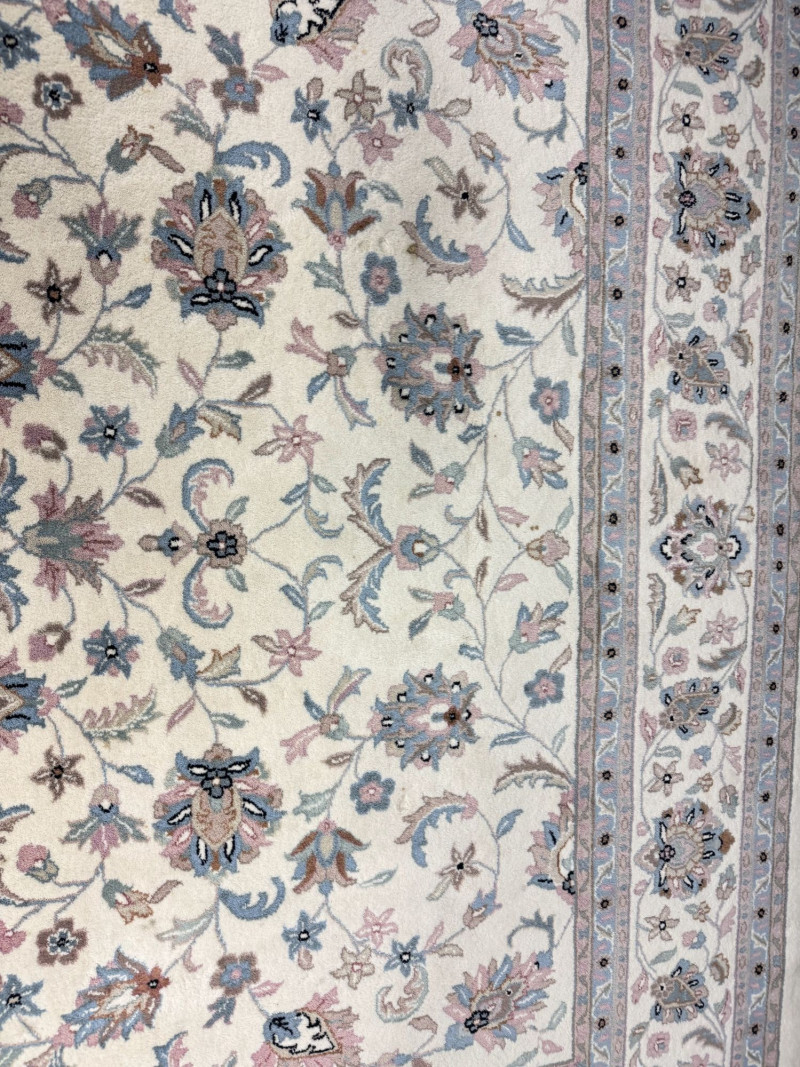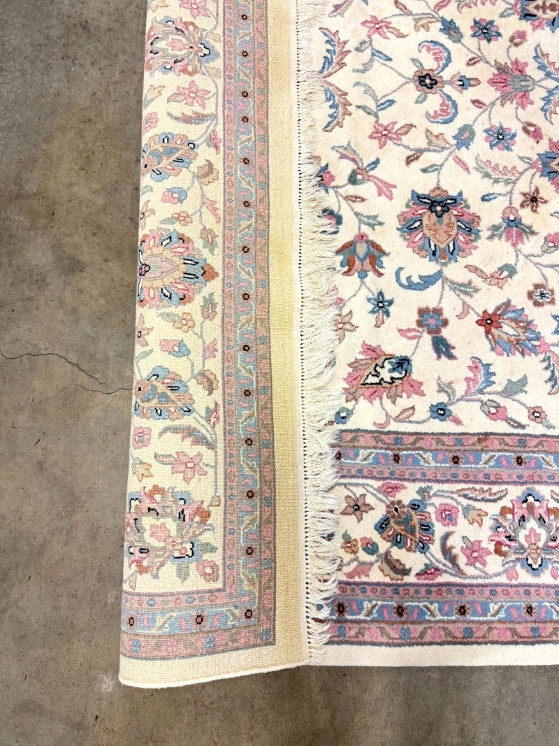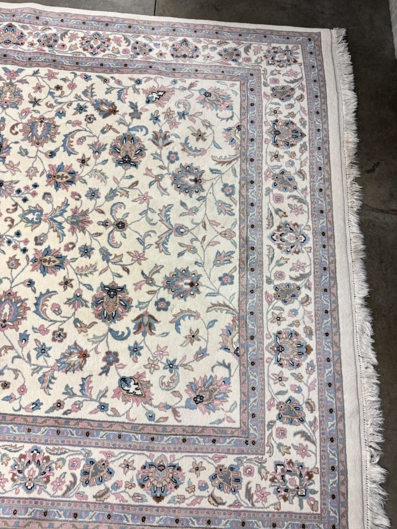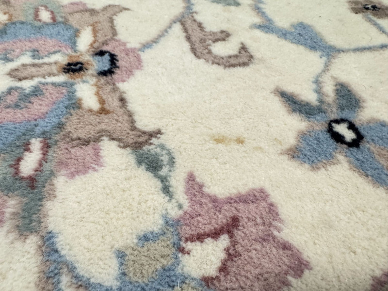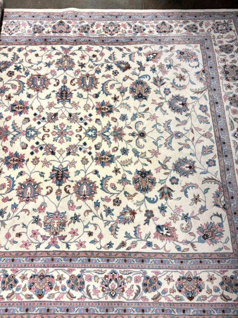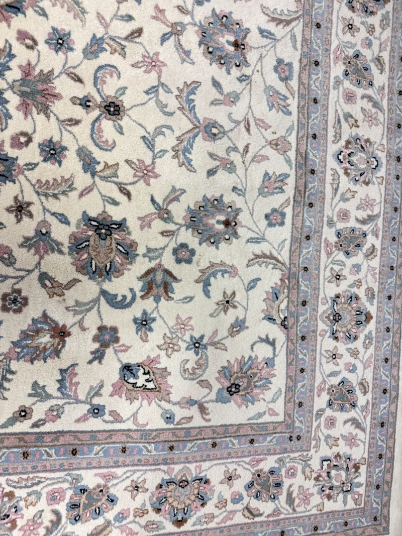 Large Cream Wool Floral Area Rug w/ Border Design 127" x 94".
