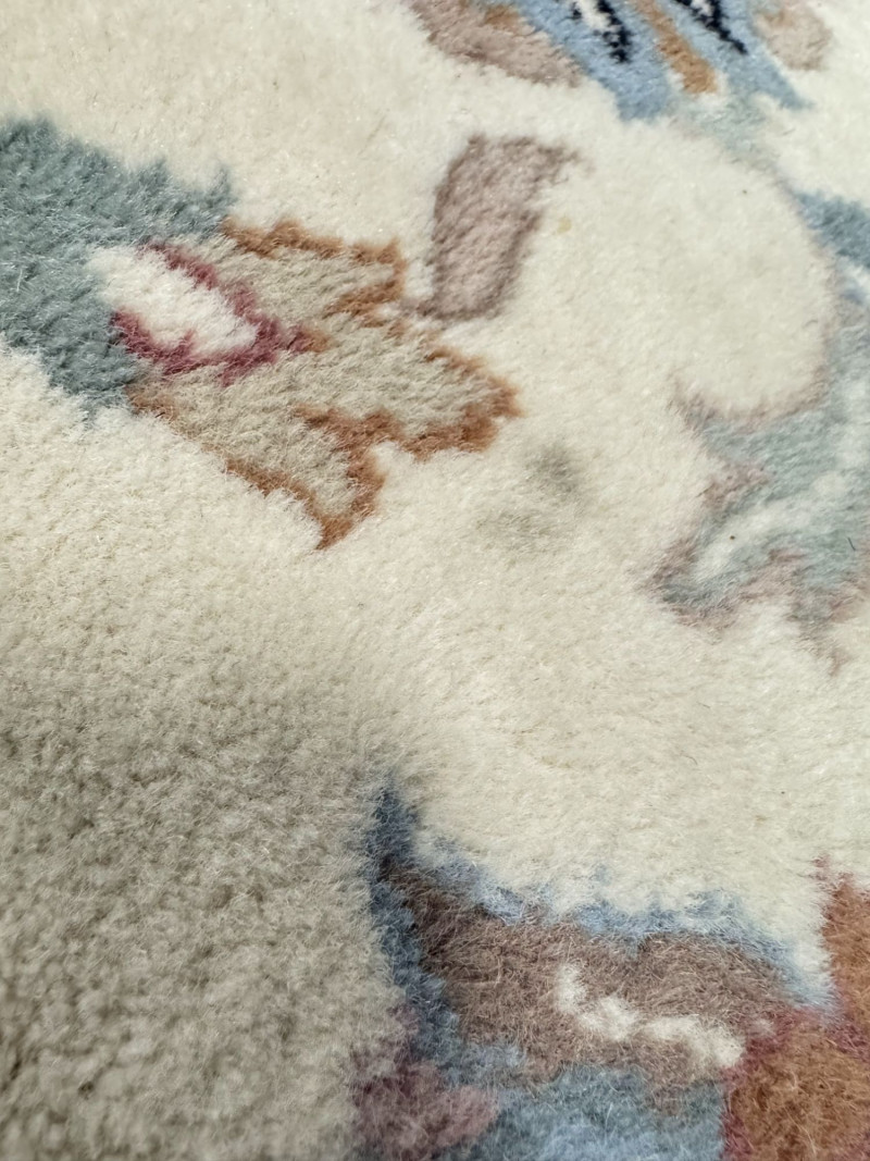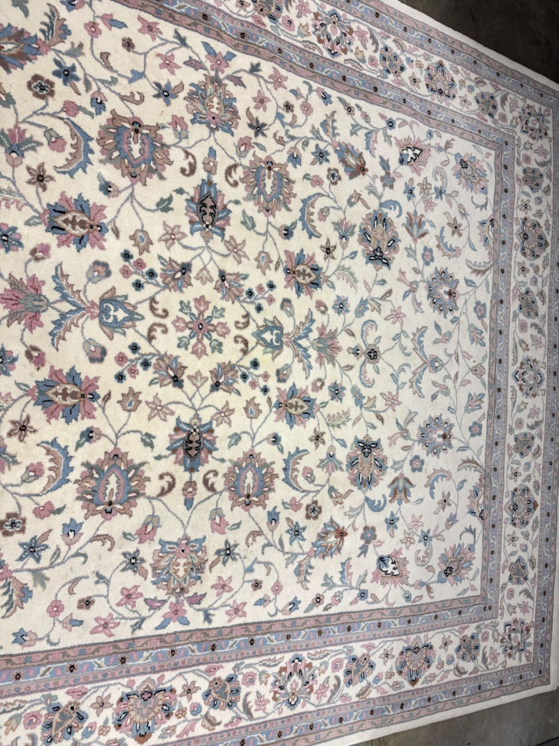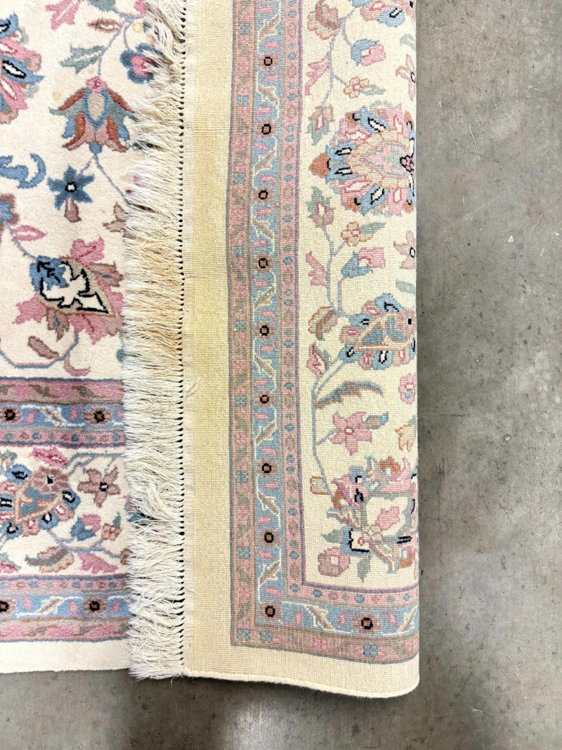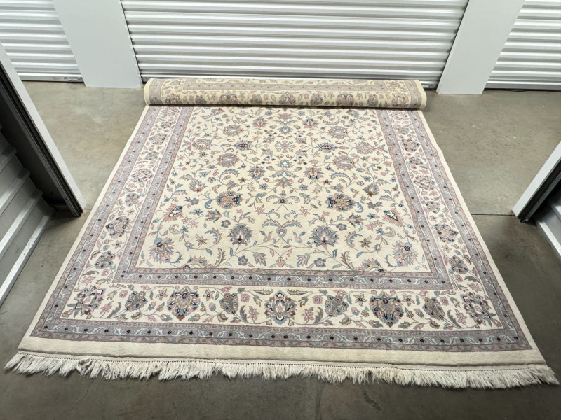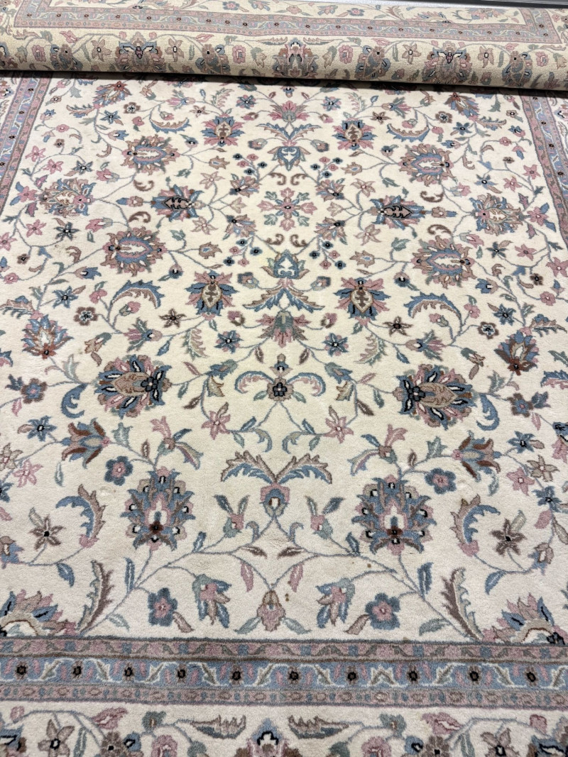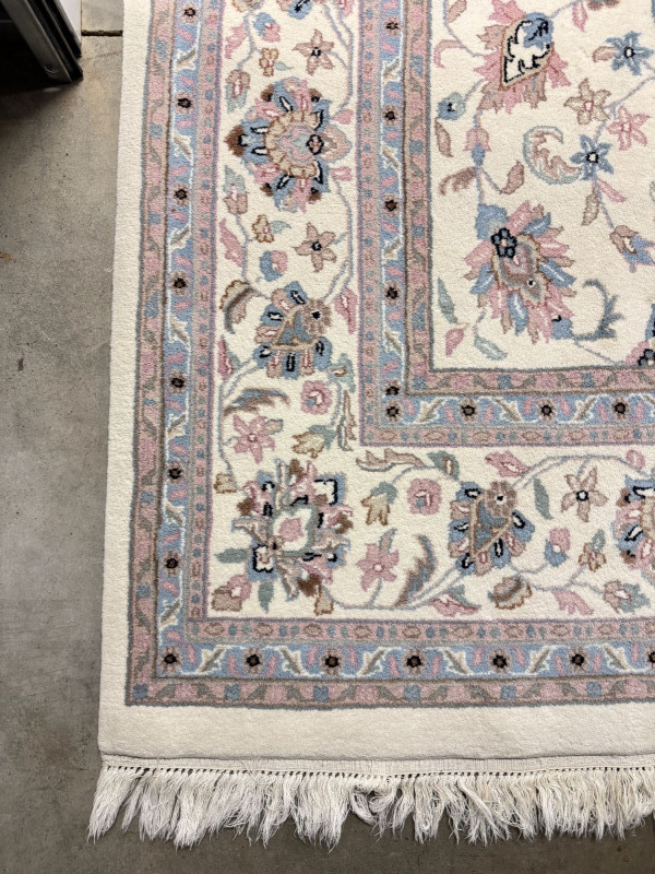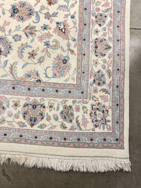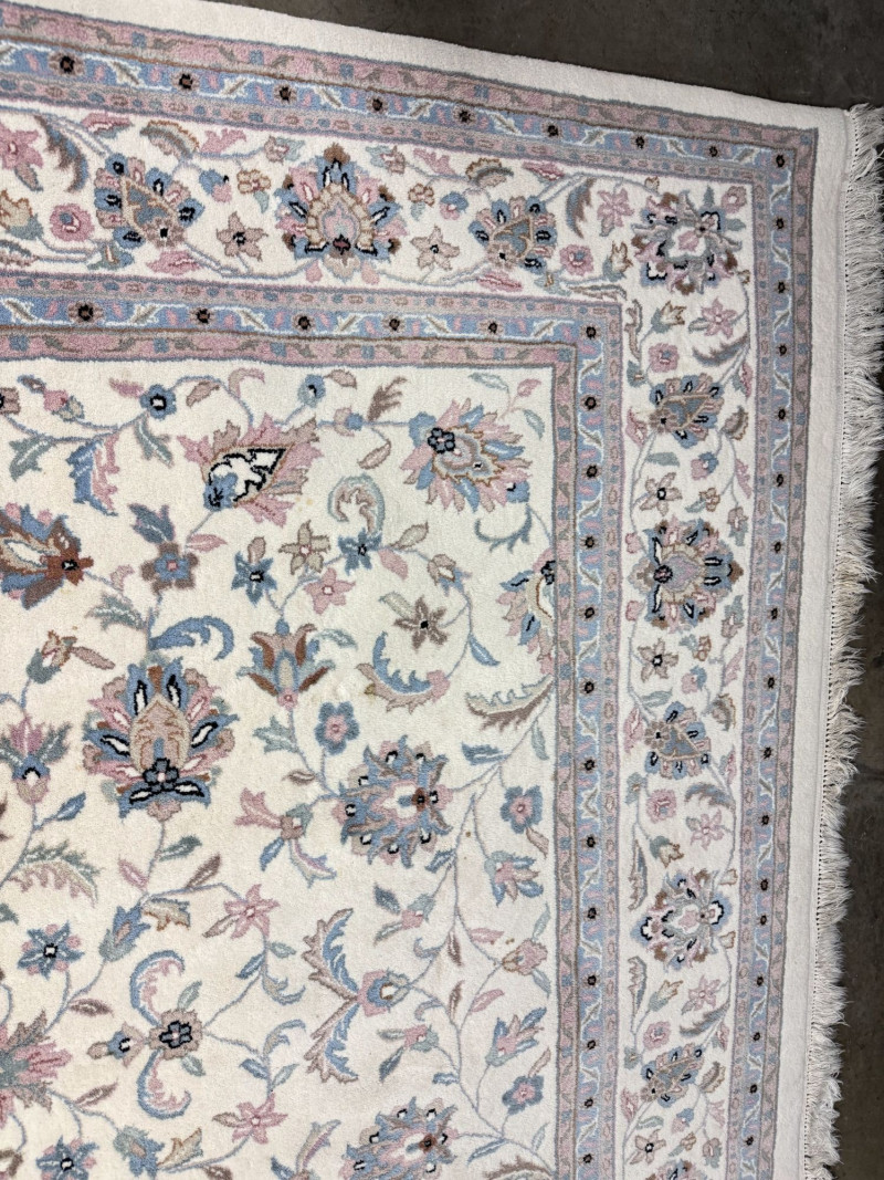 Large Cream Wool Floral Area Rug w/ Border Design 127" x 94".