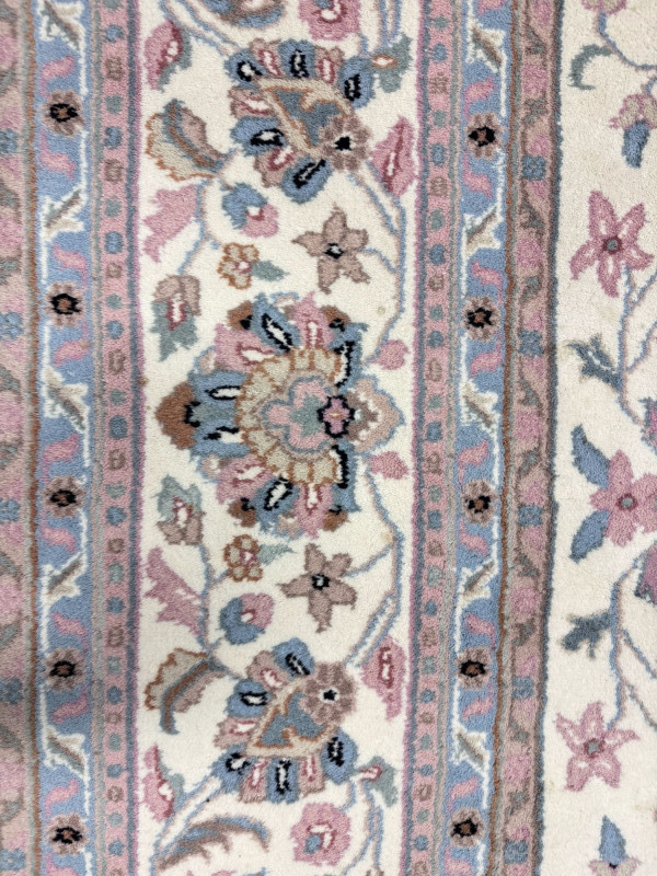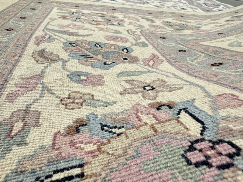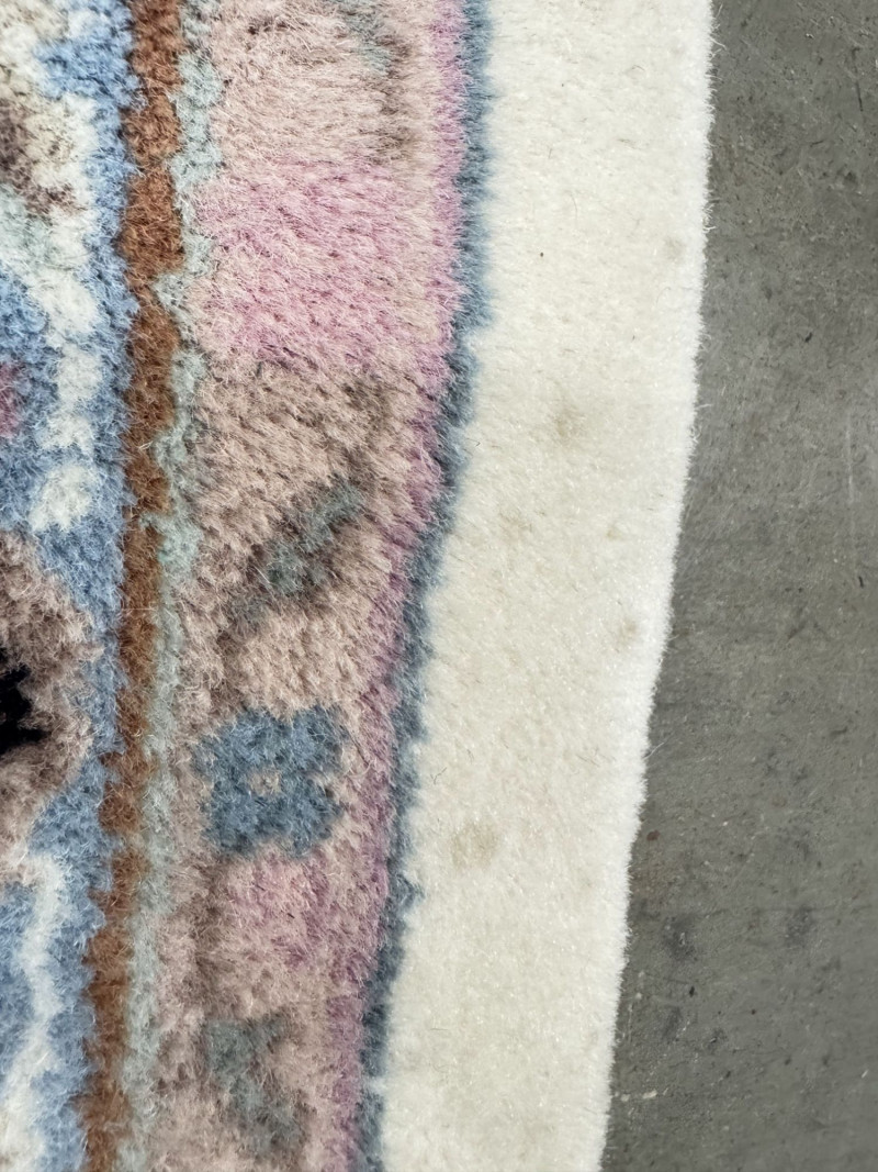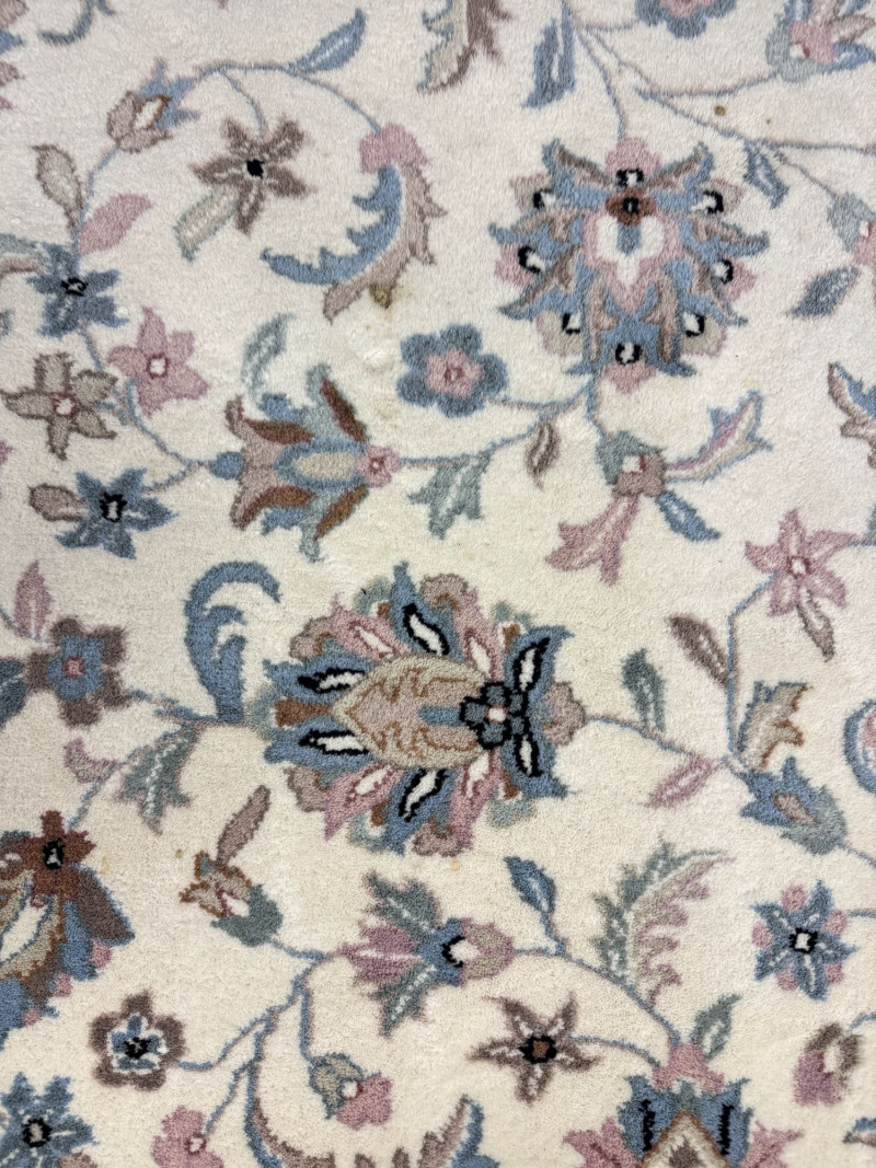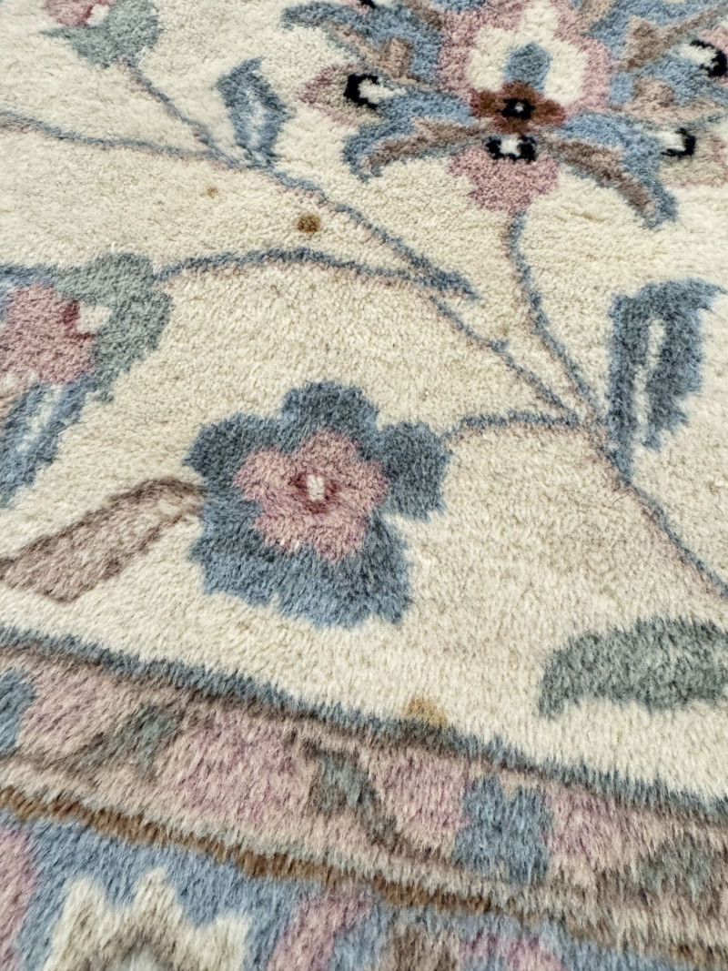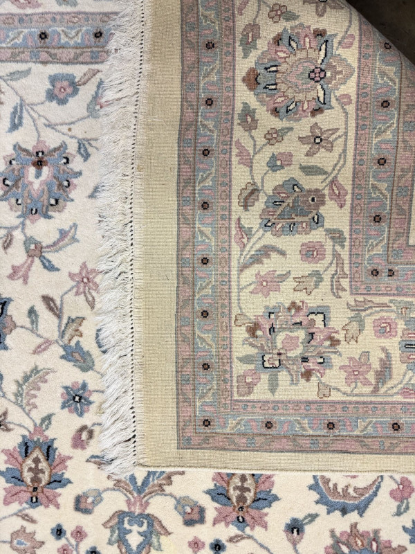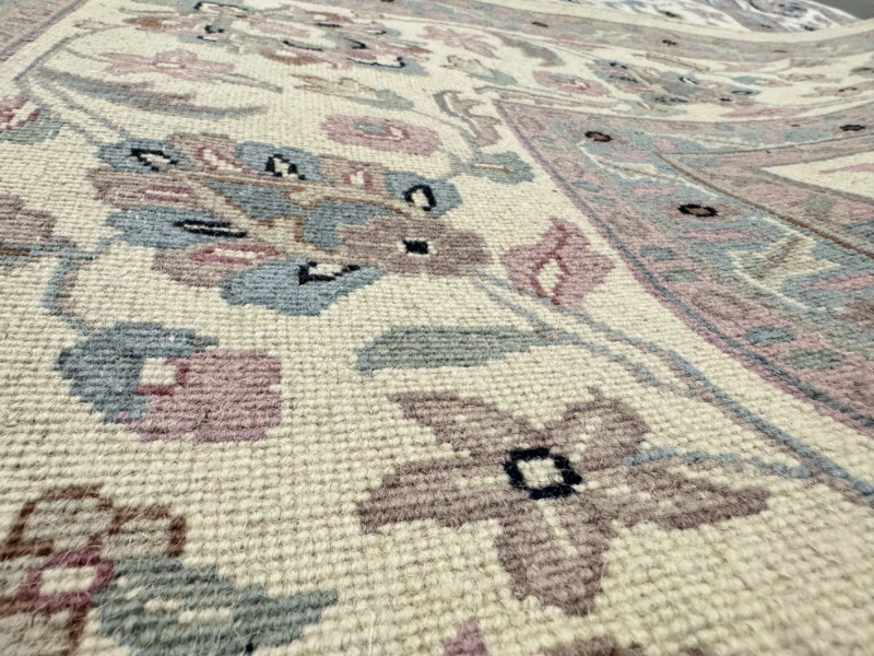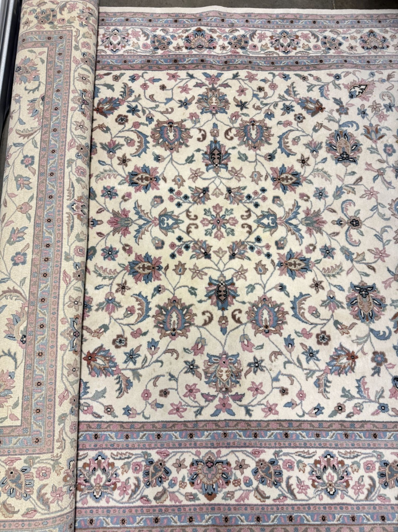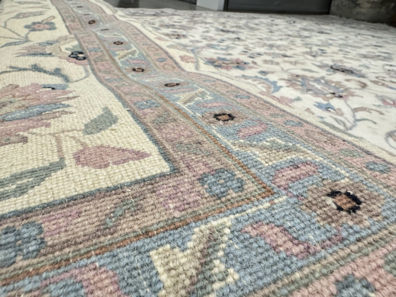 Large Cream Wool Floral Area Rug w/ Border Design 127" x 94".