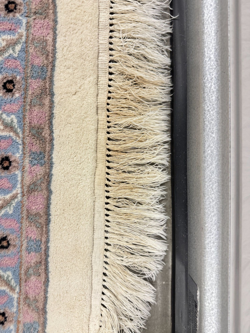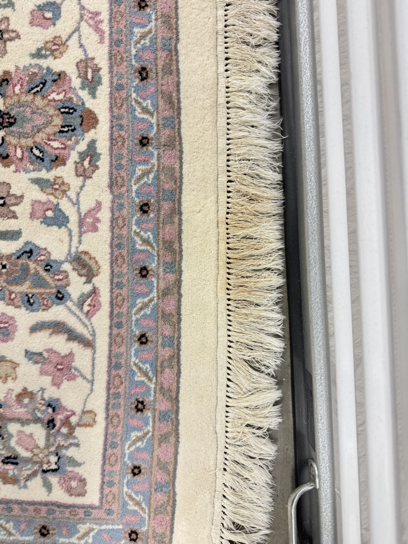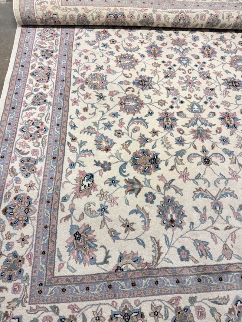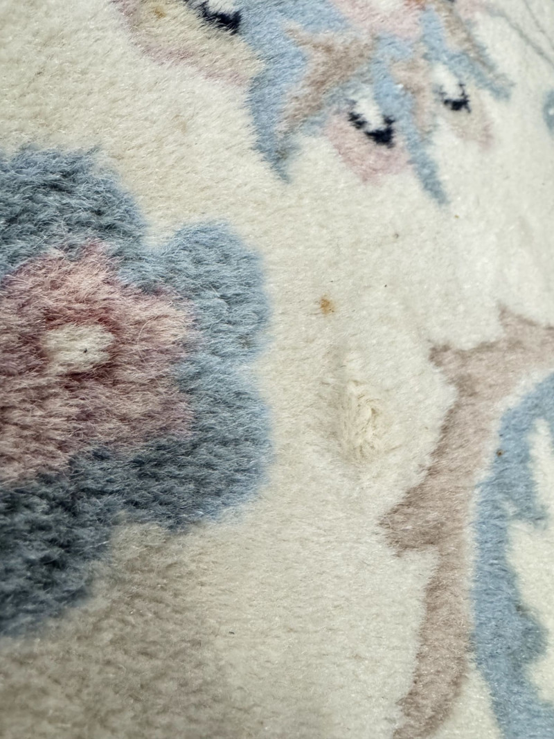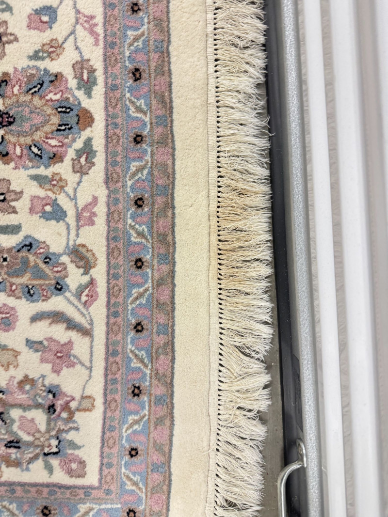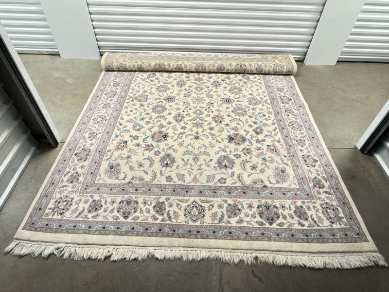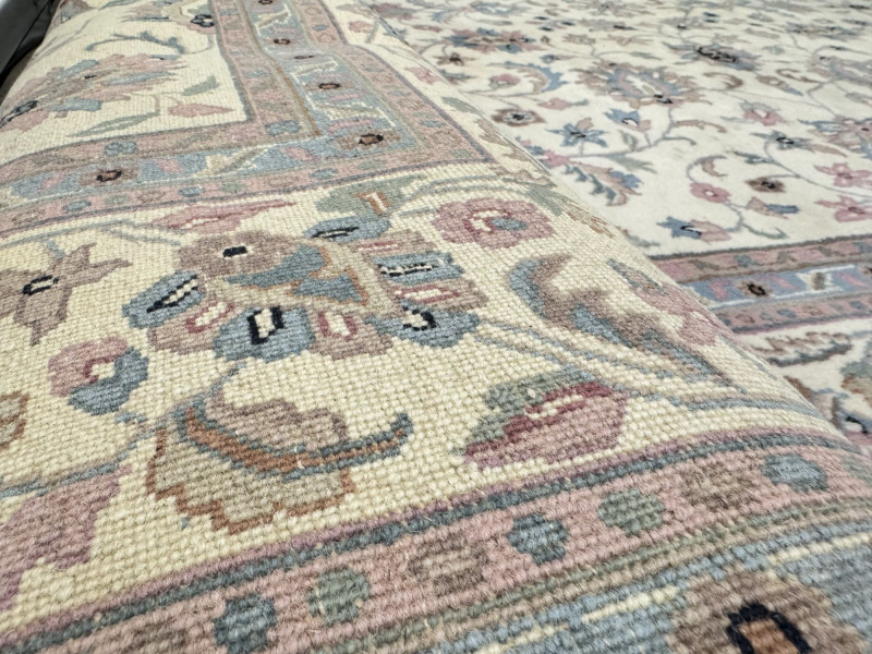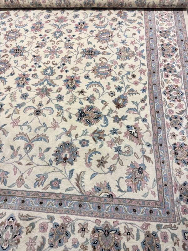 Large Cream Wool Floral Area Rug w/ Border Design 127" x 94".