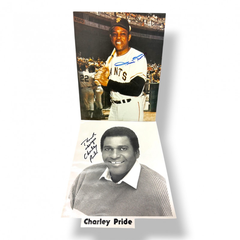 Willie Mays & Charley Pride Signed Photos, 2 Pc Set.