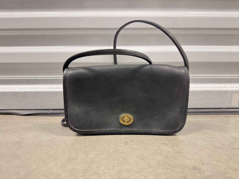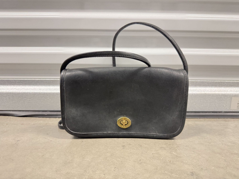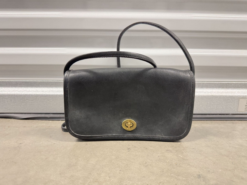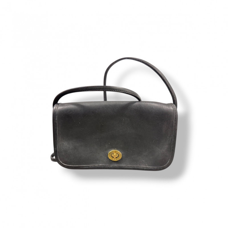 Coach Black Leather Turnlock Flap Shoulder Bag