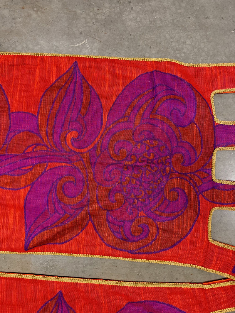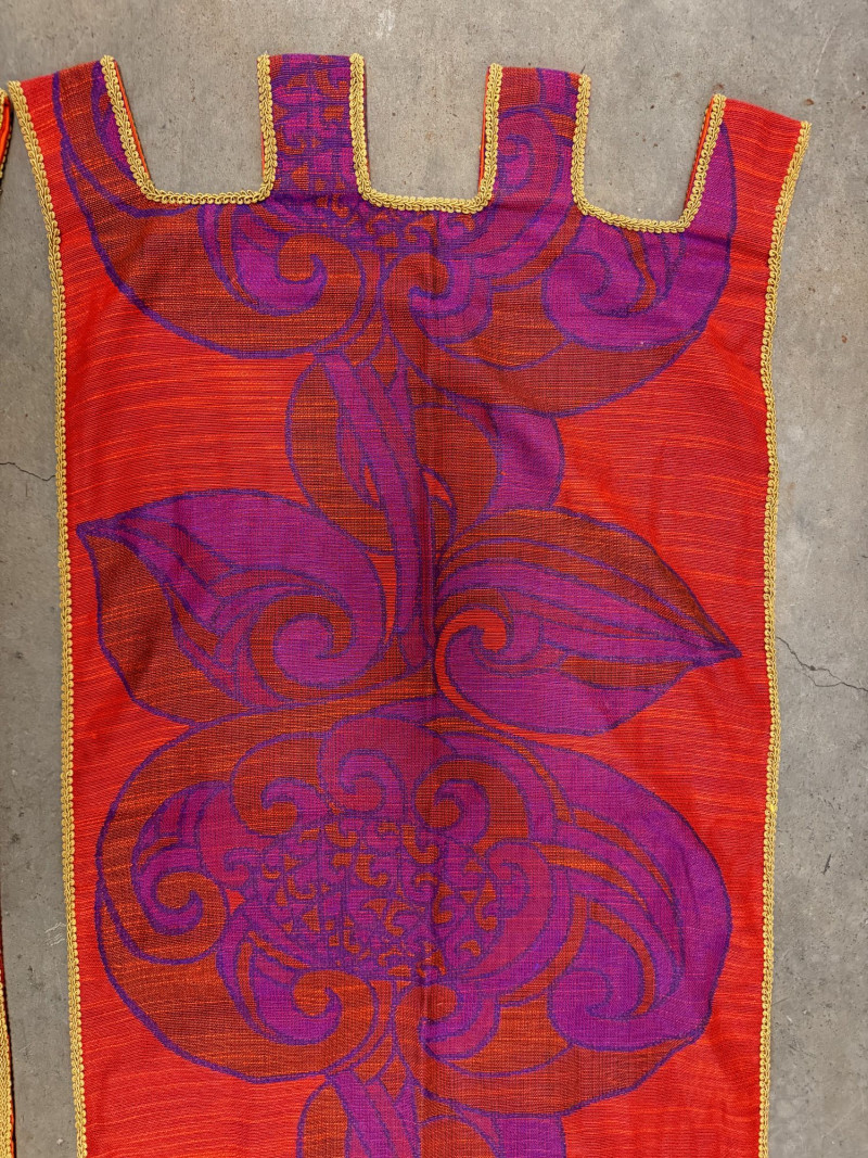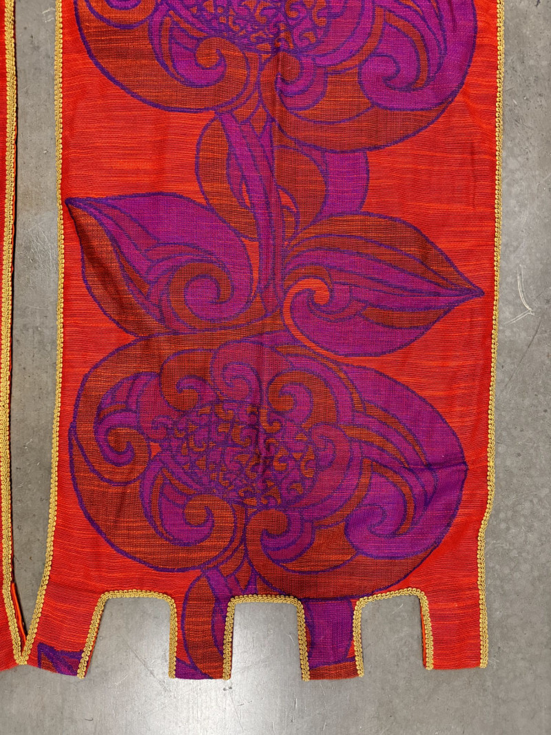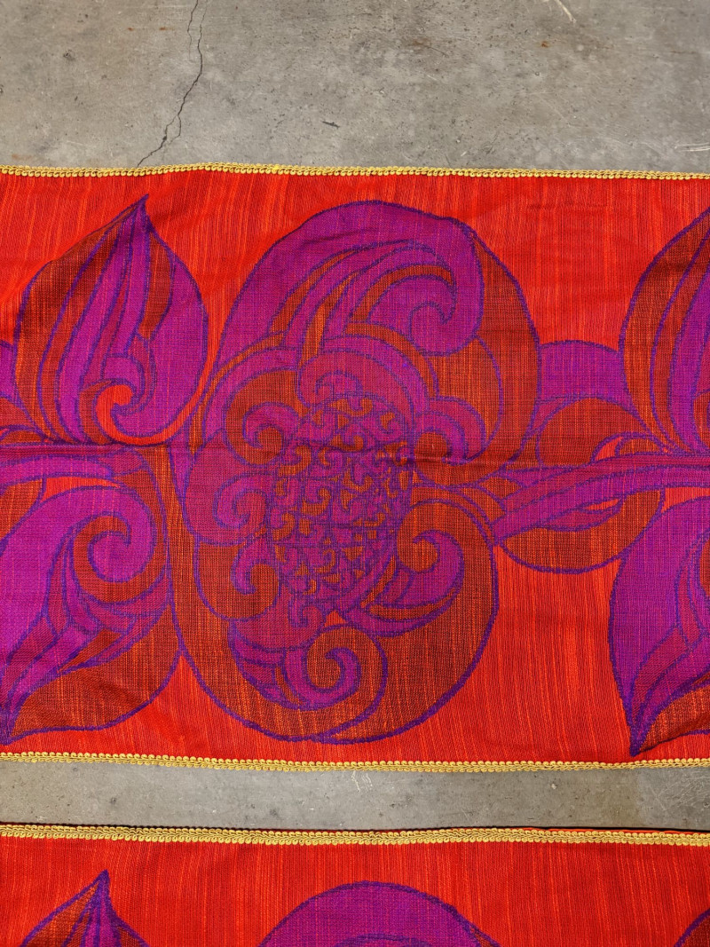 Lot # 214 - Floral Pattern Fabric Tapestry Panels - Red & Purple, See Notes