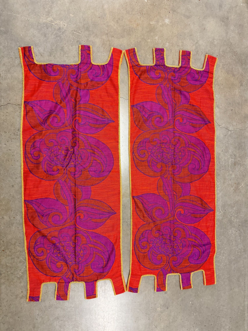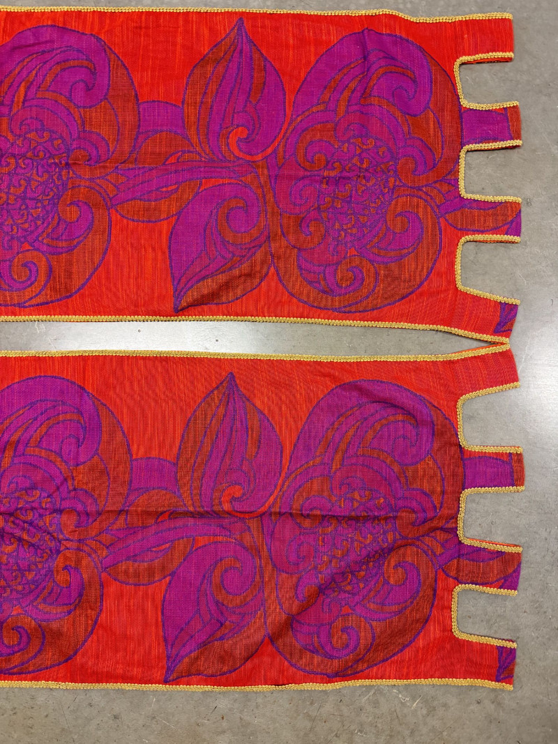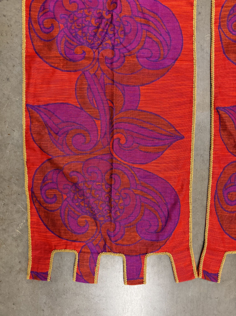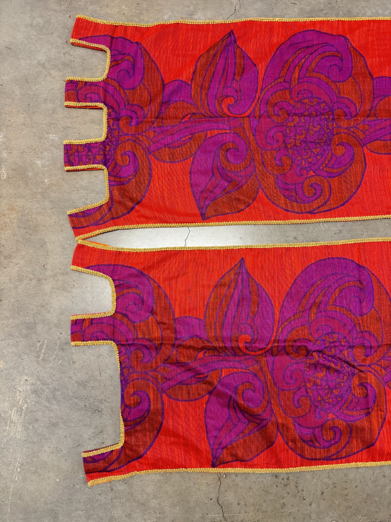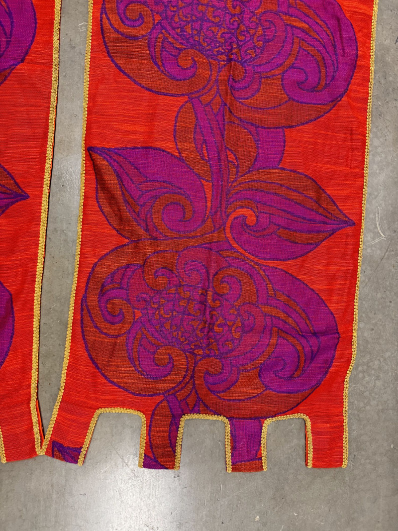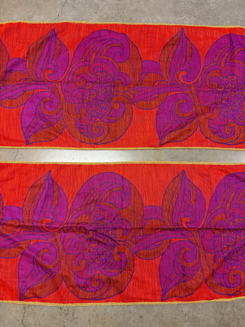 Pair Of Floral Pattern Fabric Tapestry Panels - Red & Purple, See Notes.