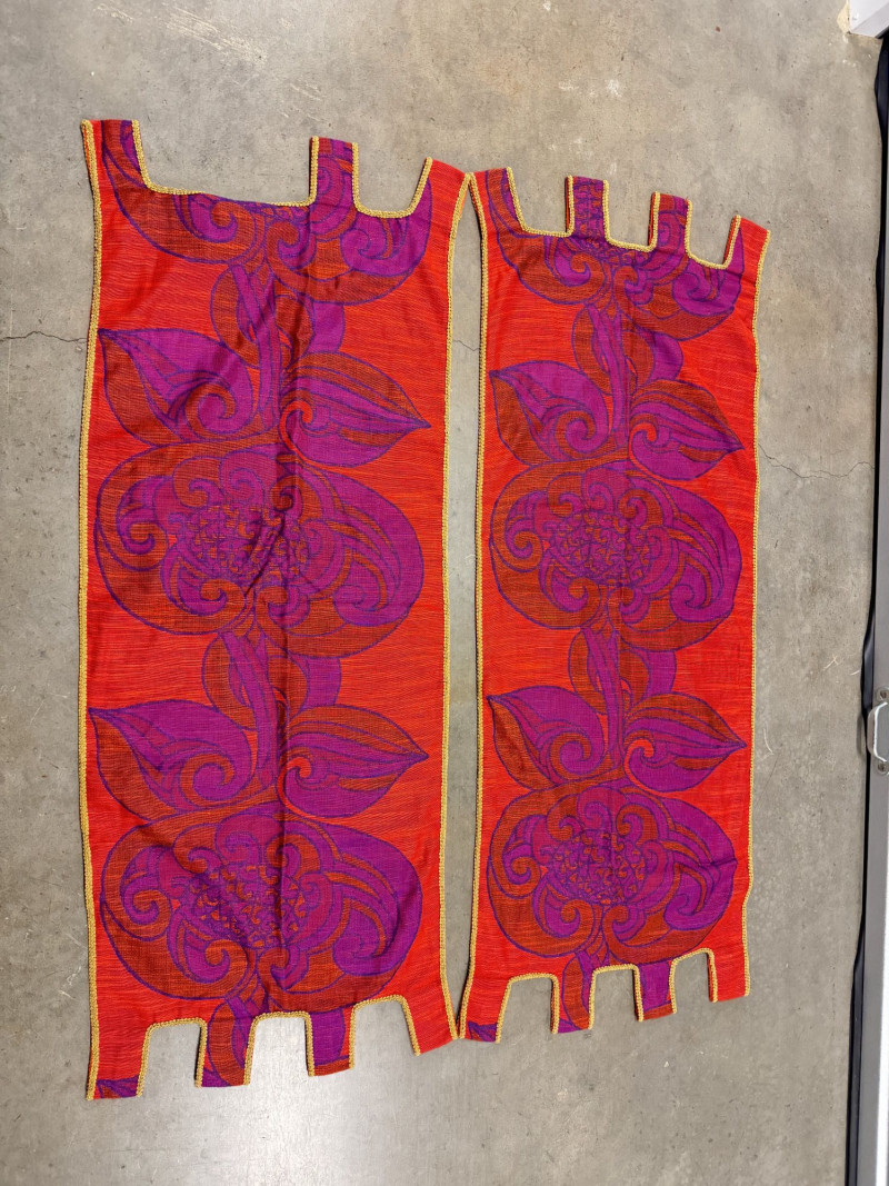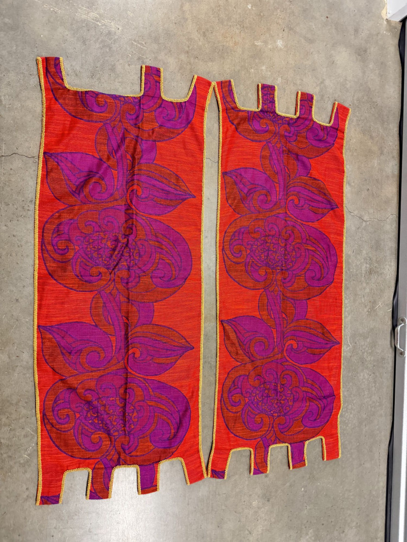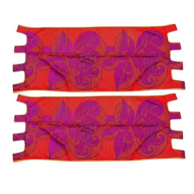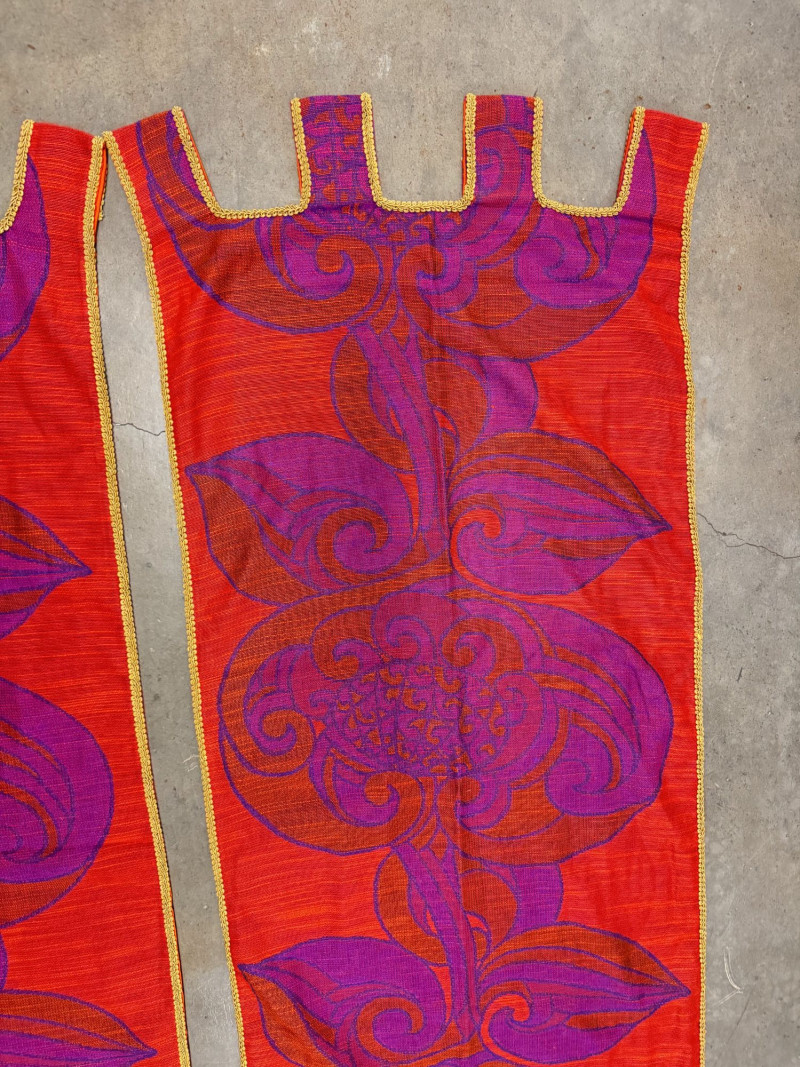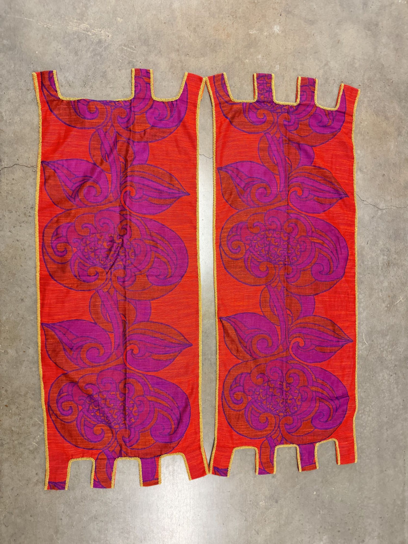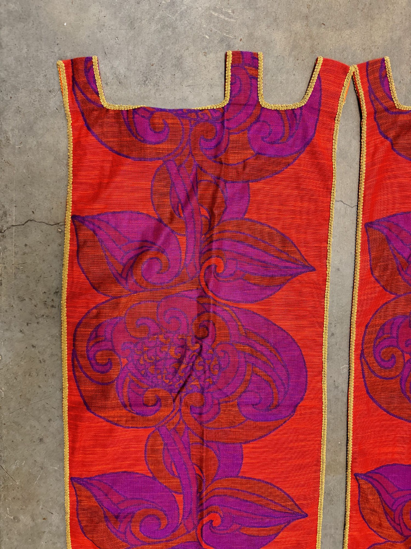 Pair Of Floral Pattern Fabric Tapestry Panels - Red & Purple, See Notes.