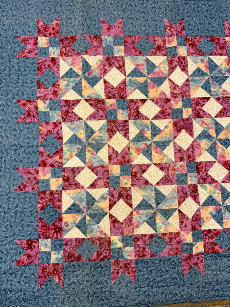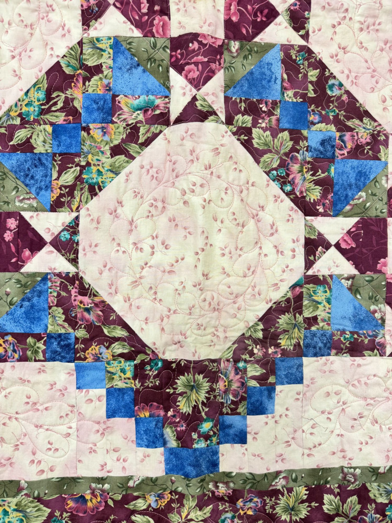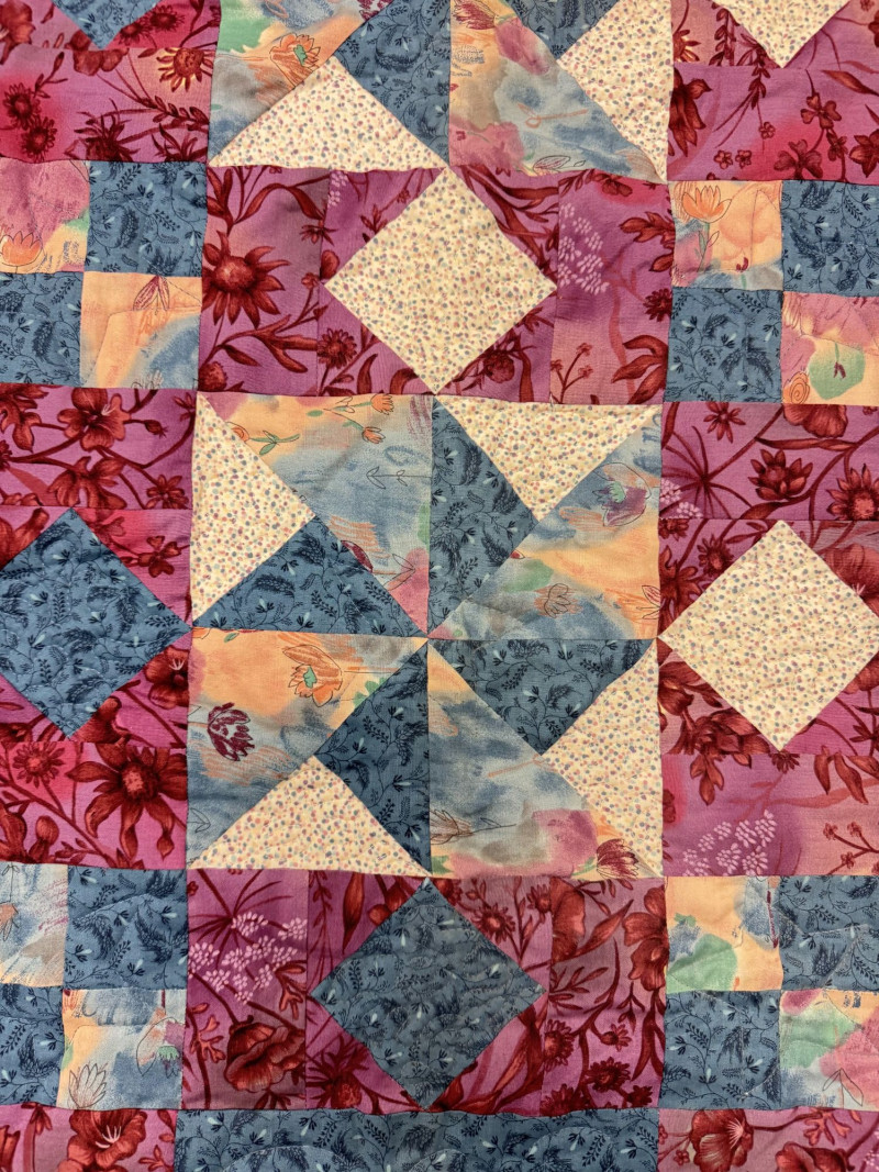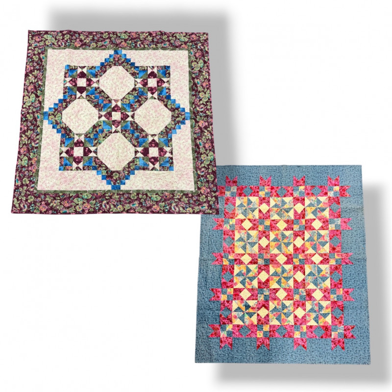 Pair of Handmade Patchwork Quilts in Floral Patterns.