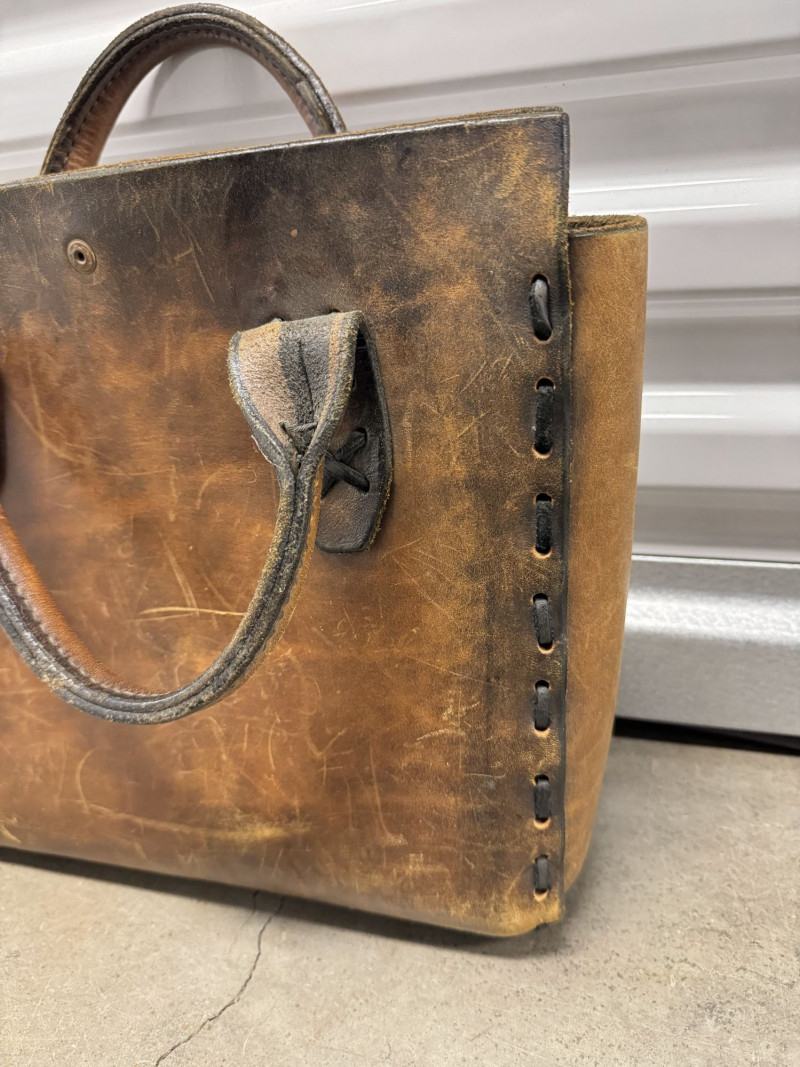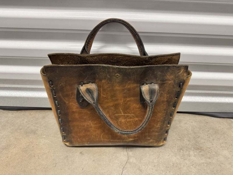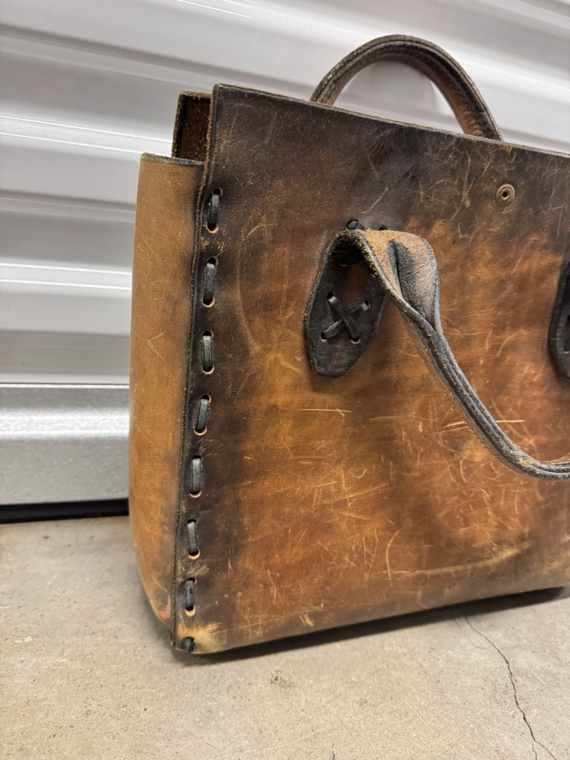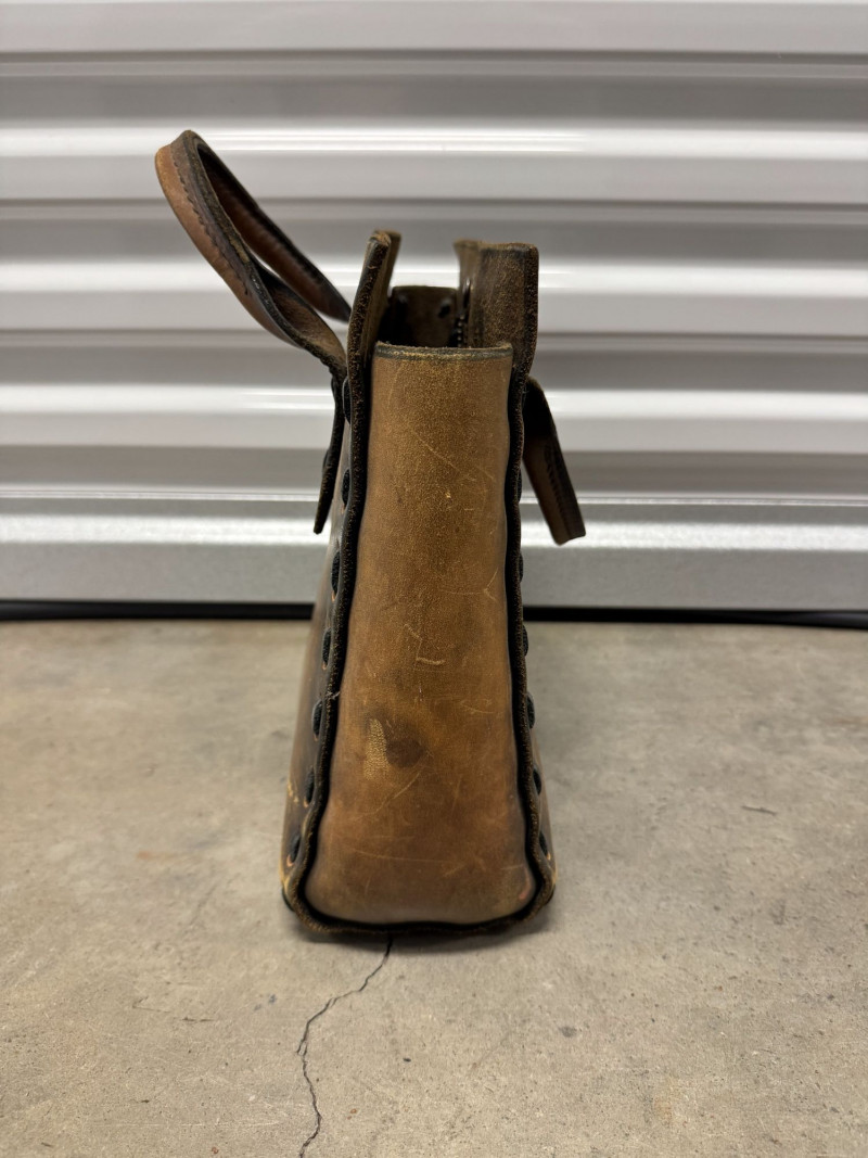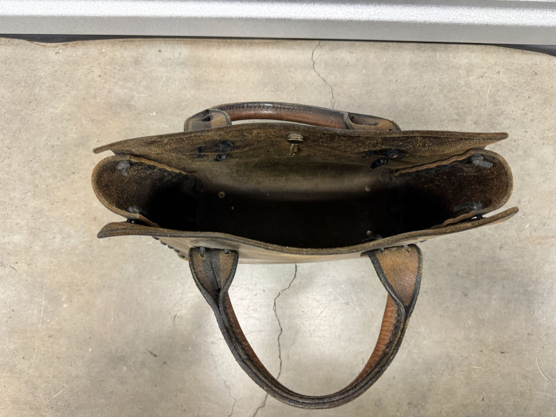Distressed Brown Leather Tote Bag w/ Double Top Handles.