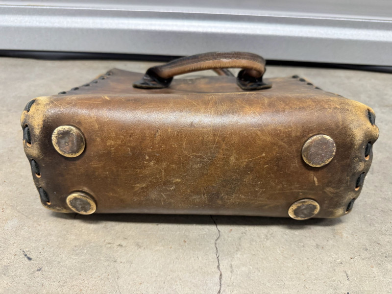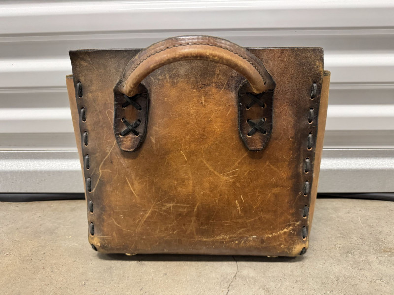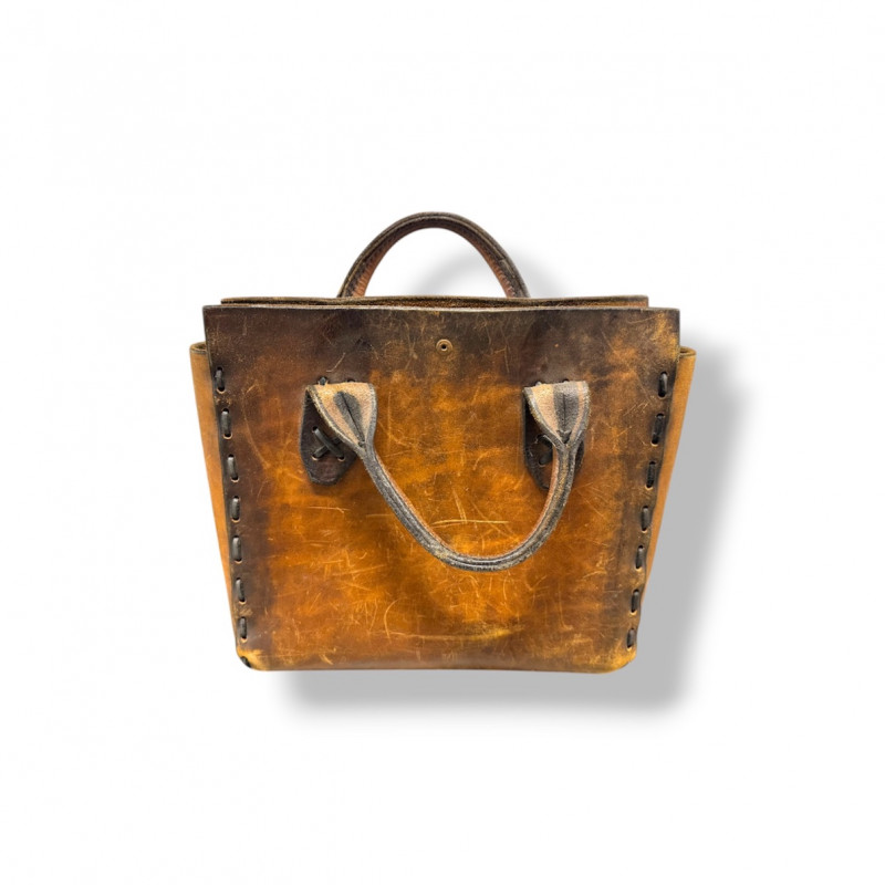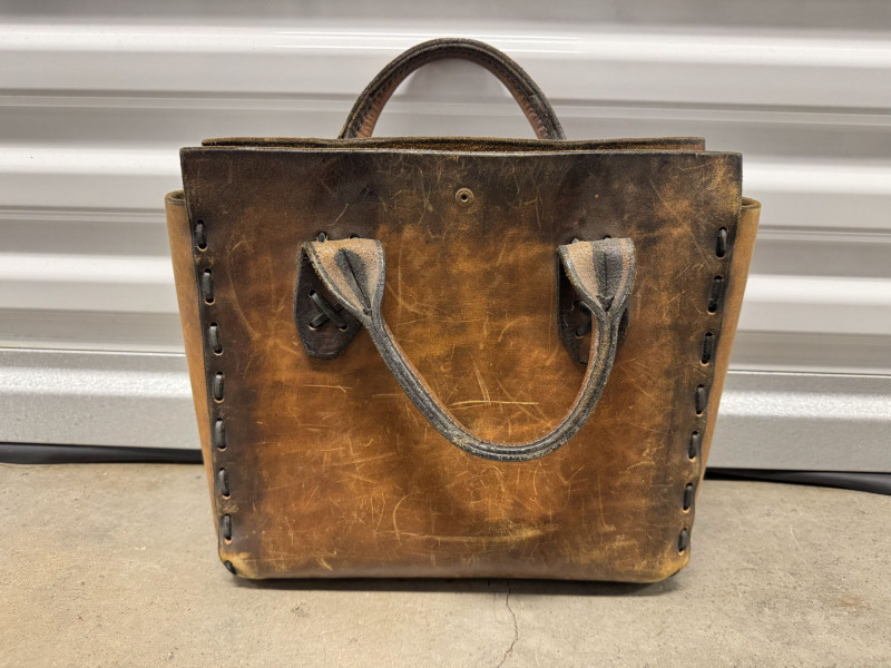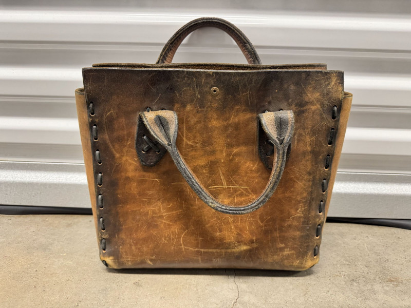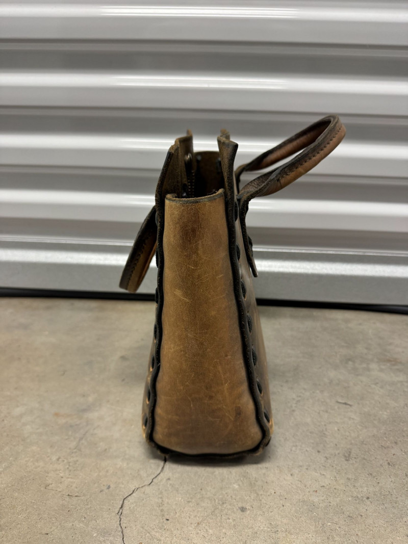 Distressed Brown Leather Tote Bag w/ Double Top Handles.